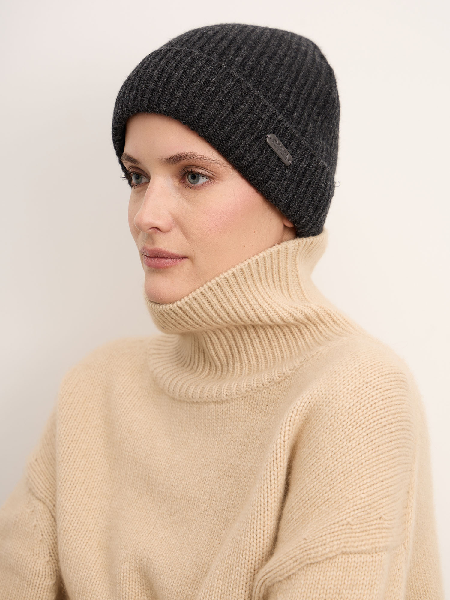 Шапка из кашемира в оттенке антрацит — это идеальное сочетание минимализма, практичности и природной элегантности.