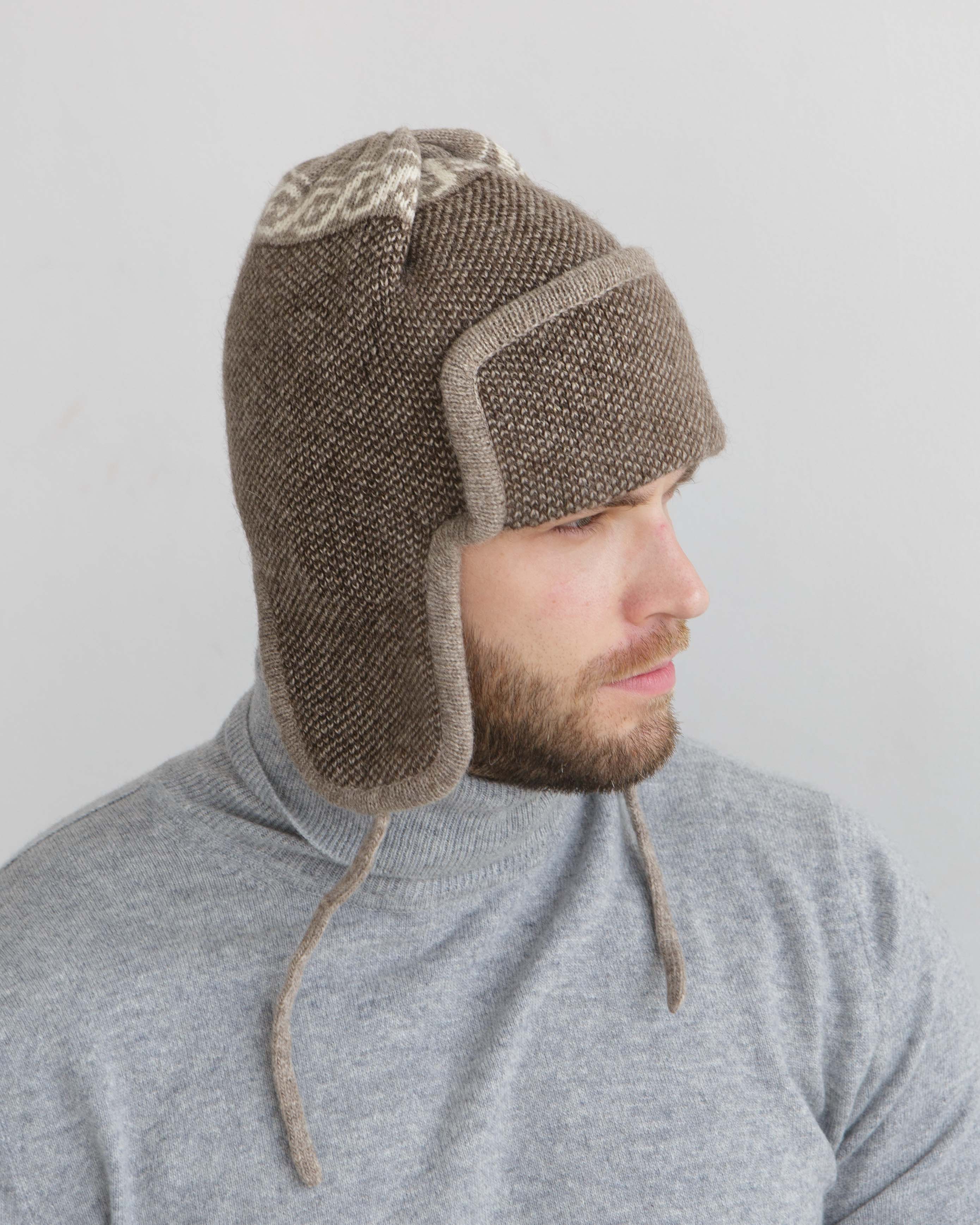 Ушанка из шерсти яка с рисунком 3871 коричневая