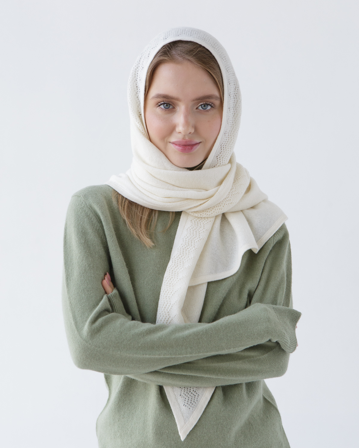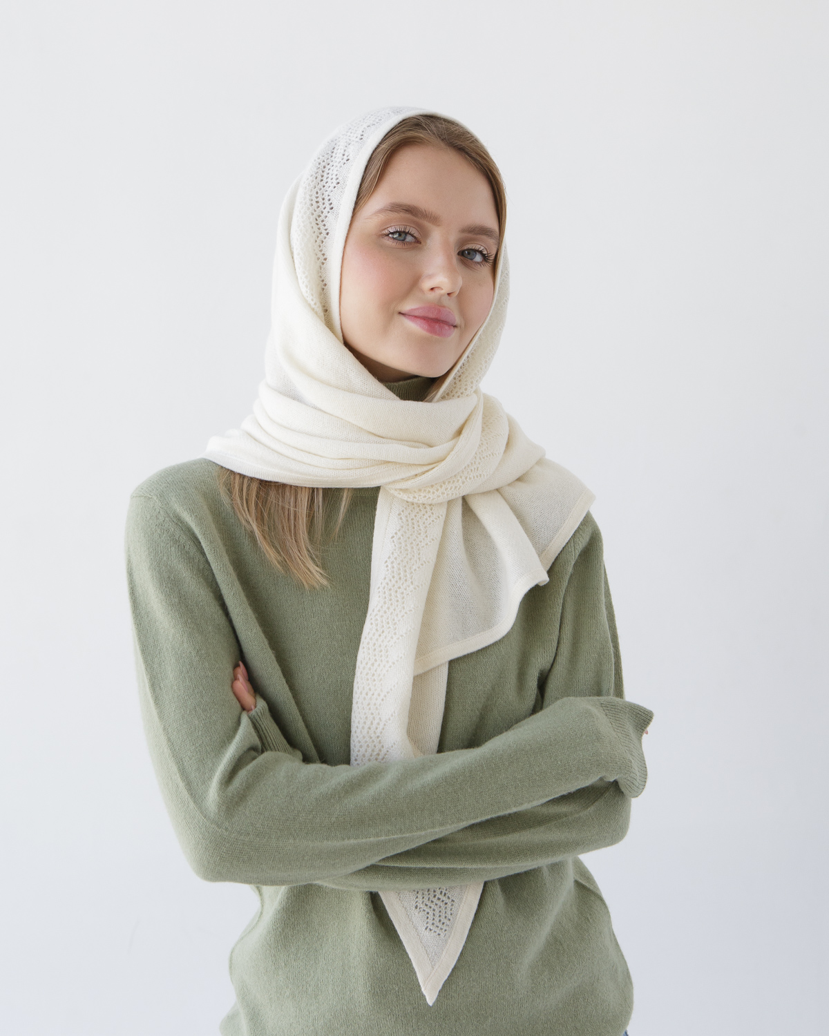 Косынка из кашемира 09085 кремовая