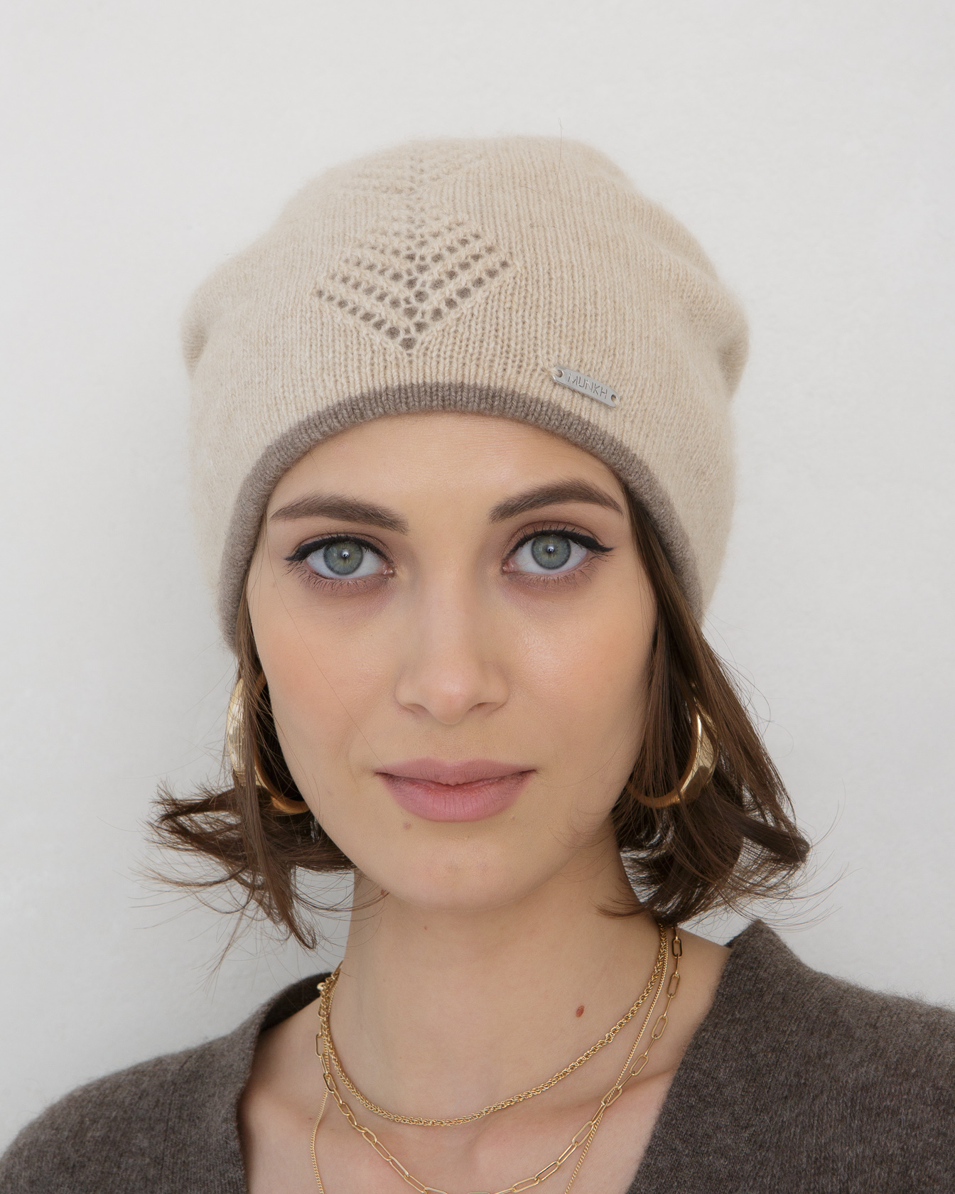 Шапка из кашемира 04177 бежевая