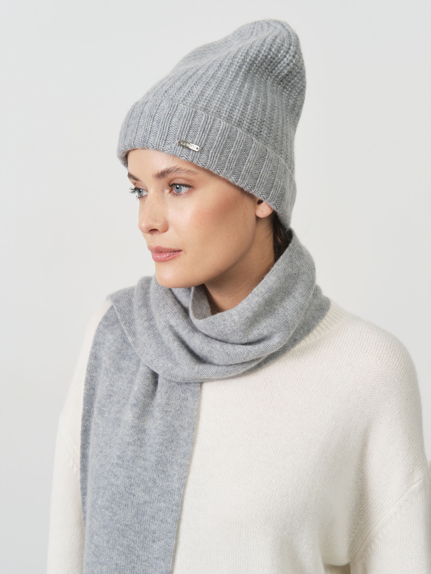 Шарф из кашемира 03034 серо-голубой
