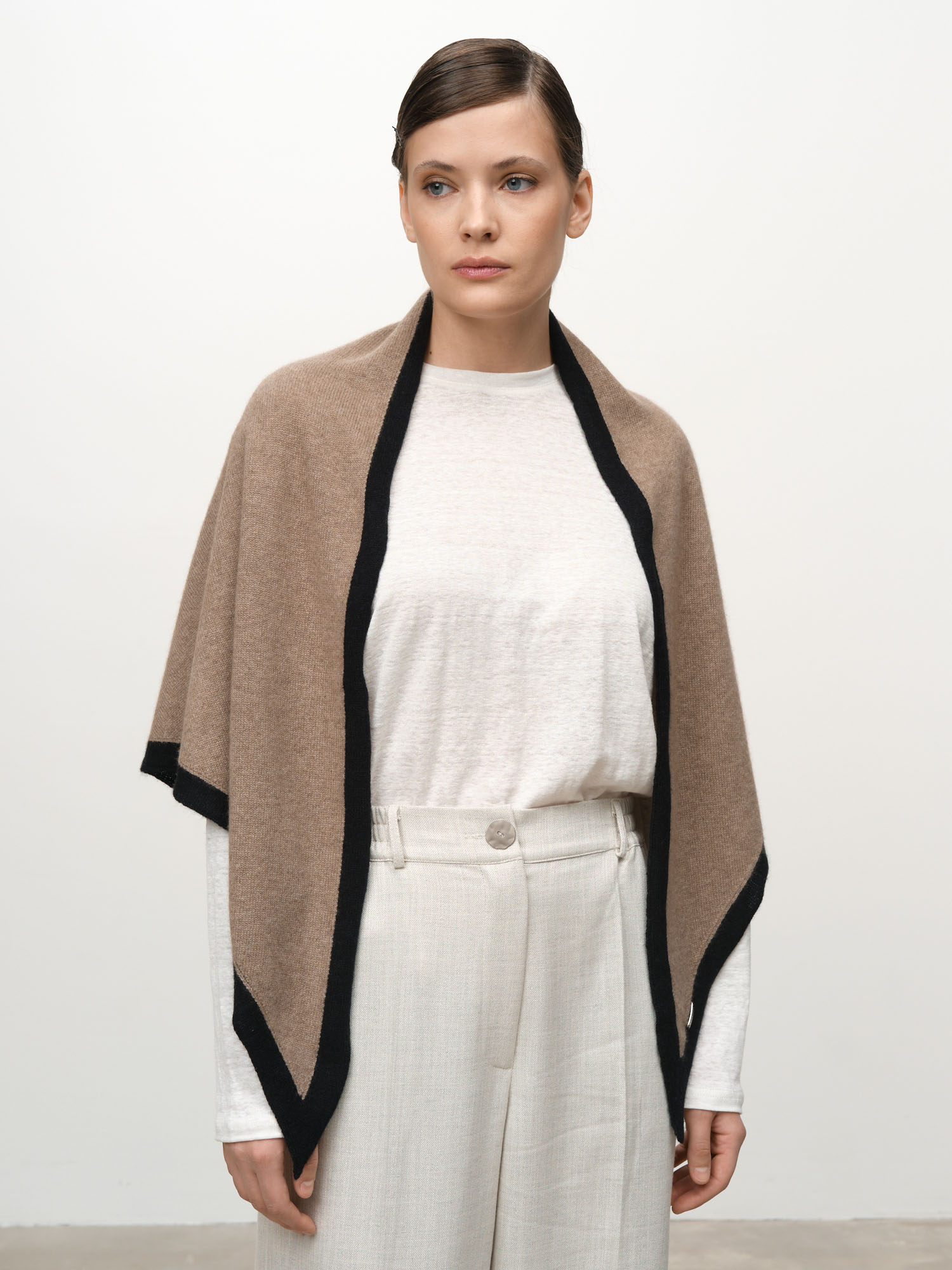 Кашемировая косынка в оттенке капучино с черным – роскошный аксессуар для завершения вашего образа.