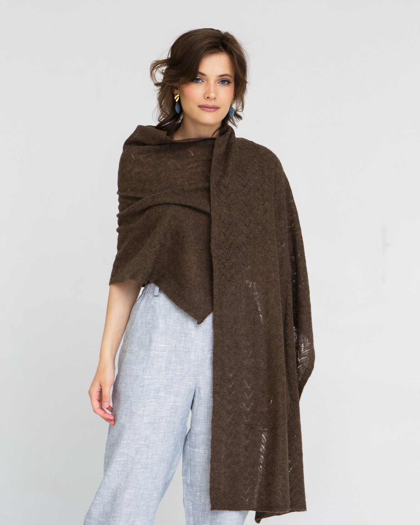 Ажурный узор придает палантину элегантность и легкость, что делает его подходящим как для повседневного ношения, так и для особых случаев. Этот универсальный аксессуар можно носить как шарф, накидку или использовать в качестве уютного пледа.