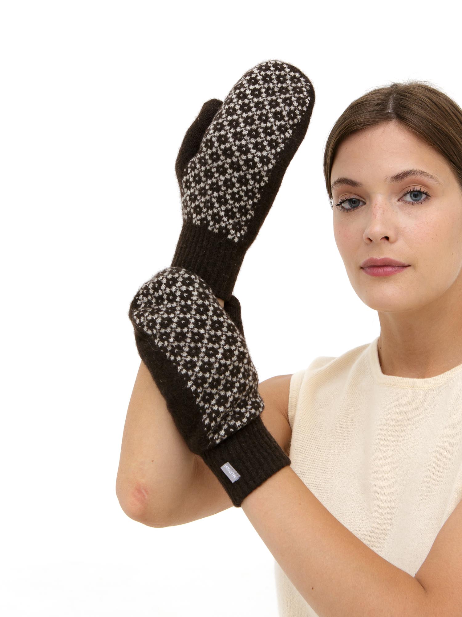 Варежки из пуха яка 30116 темно-коричневые