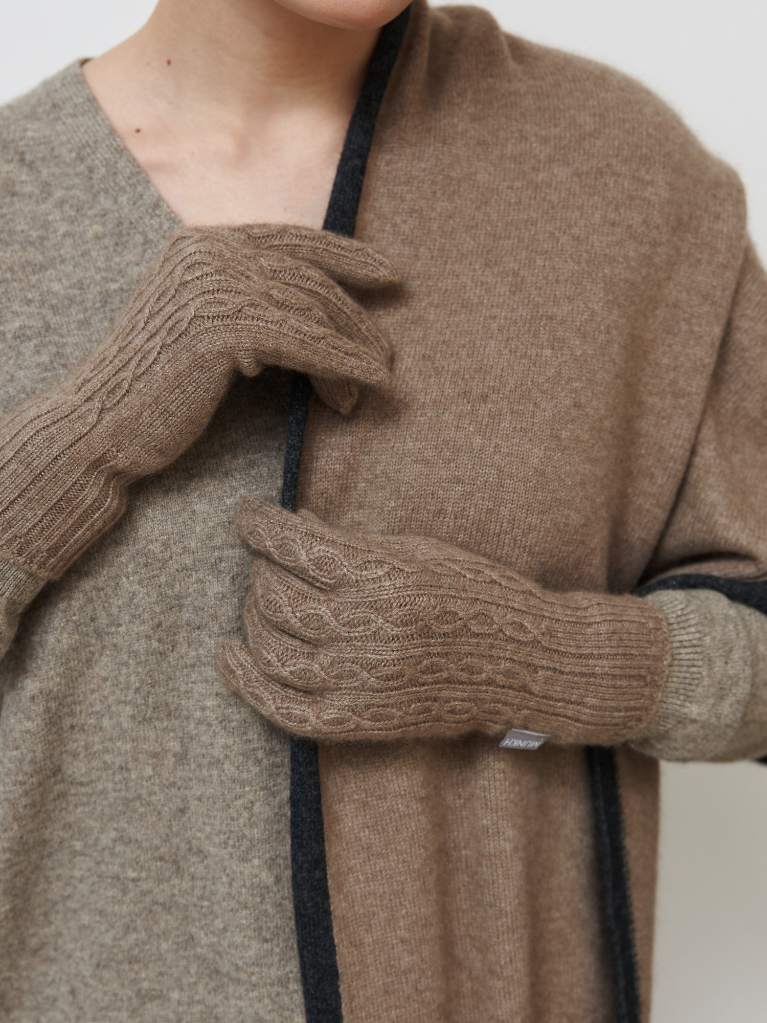 Изготовленные из 100% кашемира, перчатки отличаются особой мягкостью и теплом. Фактурный узор придаёт изделию изысканный вид, делая их не только практичным, но и стильным аксессуаром. Цвет капучино, универсальный и благородный, гармонично впишется в любой гардероб, добавляя вашему образу нотку утончённости.