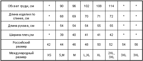 Размерная сетка: