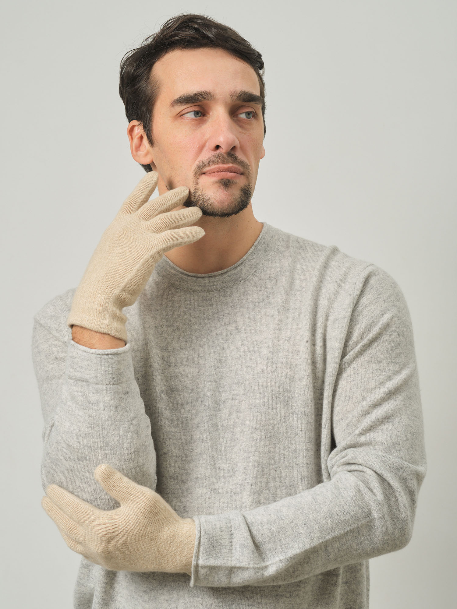 Классические перчатки из натурального кашемира в универсальном бежевом оттенке. Лаконичный дизайн делает модель подходящей как для повседневных, так и для более элегантных образов.