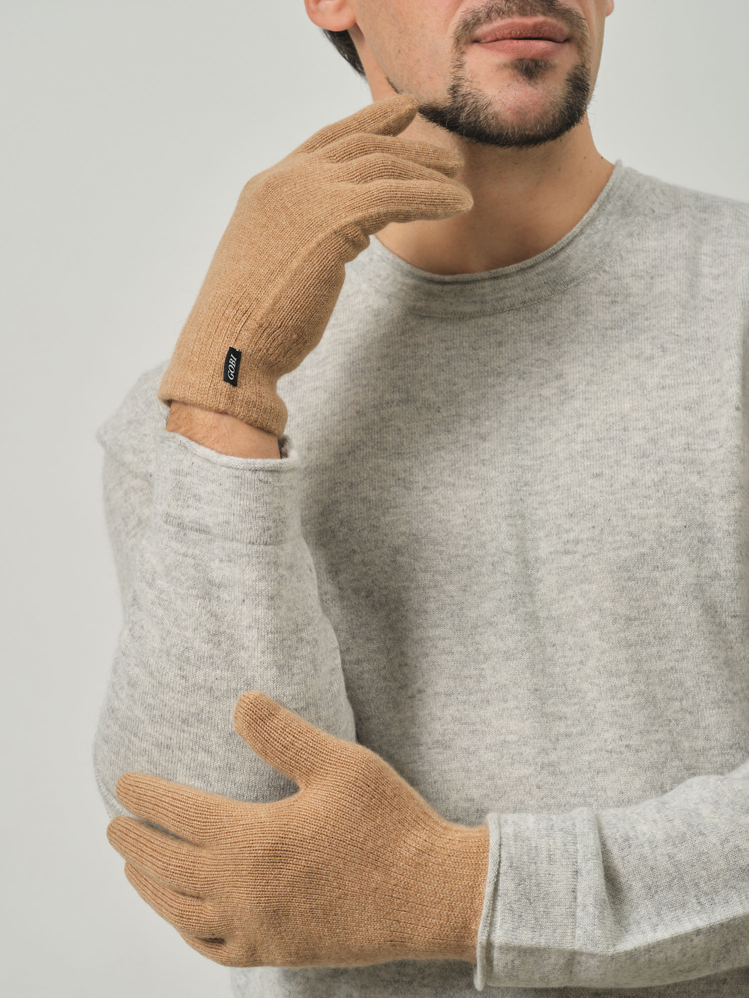 Элегантные перчатки из натурального кашемира в оттенке кэмел — универсальный аксессуар для холодного сезона. Мягкая и тонкая вязка обеспечивает комфорт, тепло и приятные тактильные ощущения. Классический дизайн легко сочетается с повседневными и более формальными образами.
