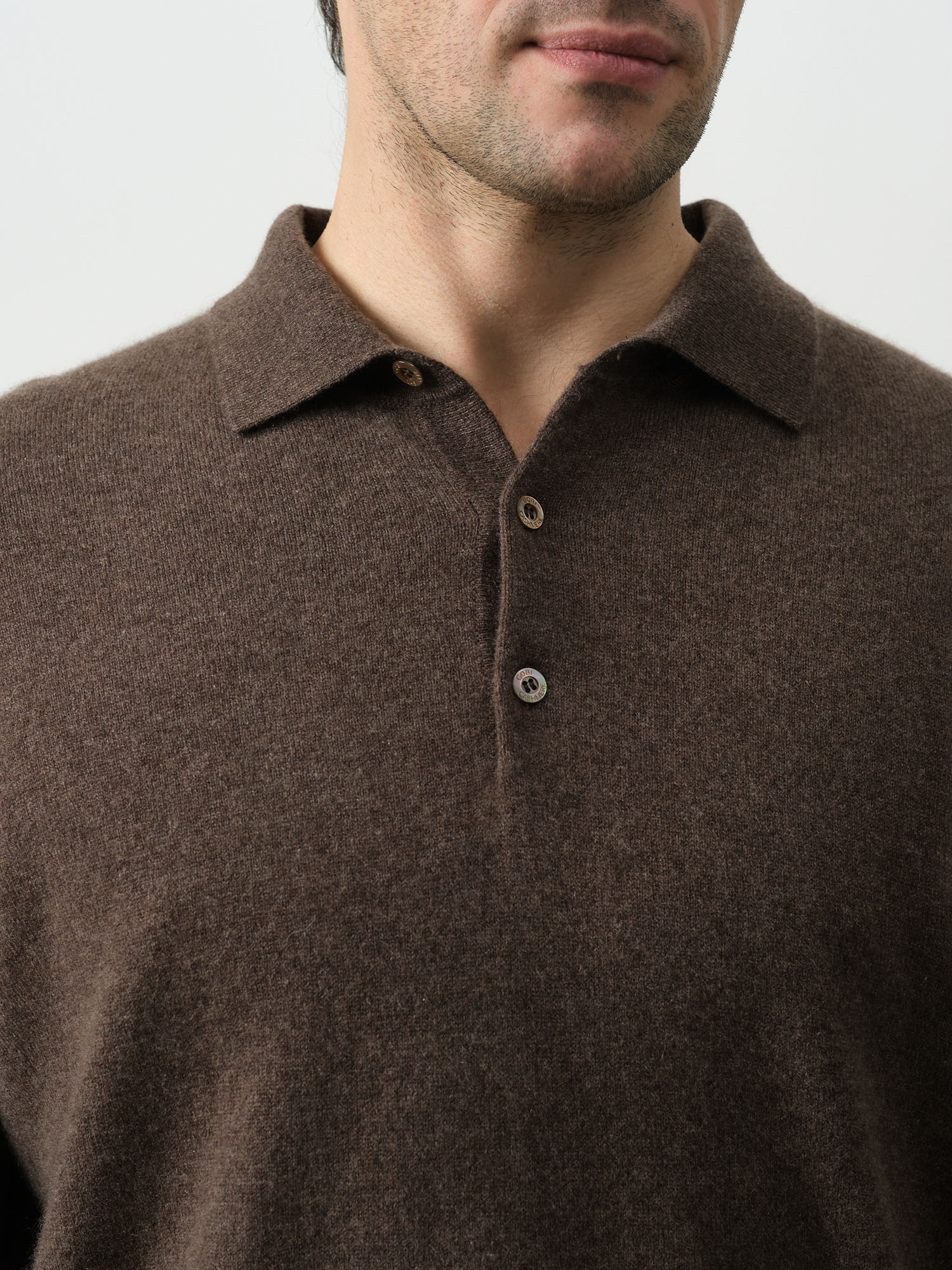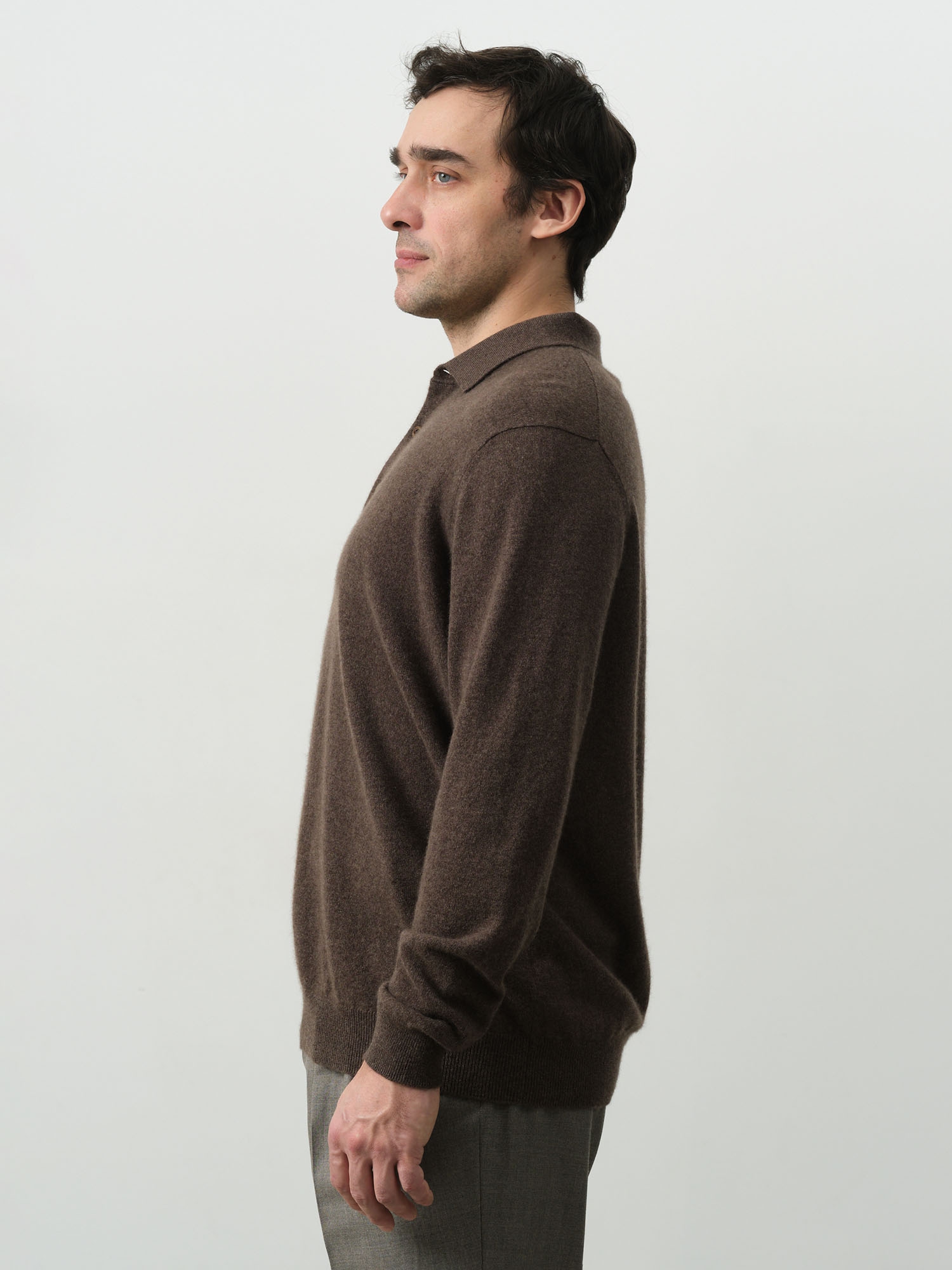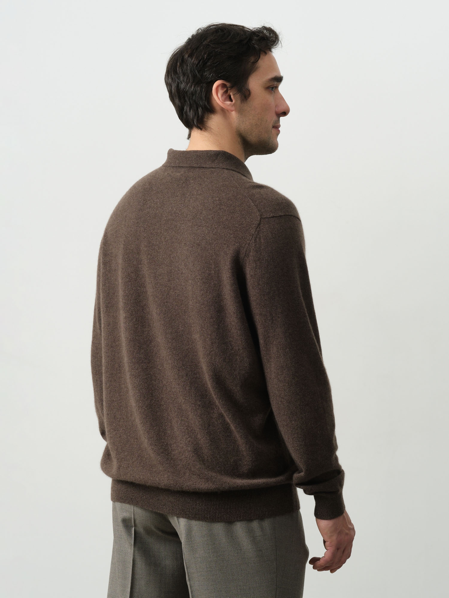 Джемпер-поло из кашемира мужской KM010140-E коричневый