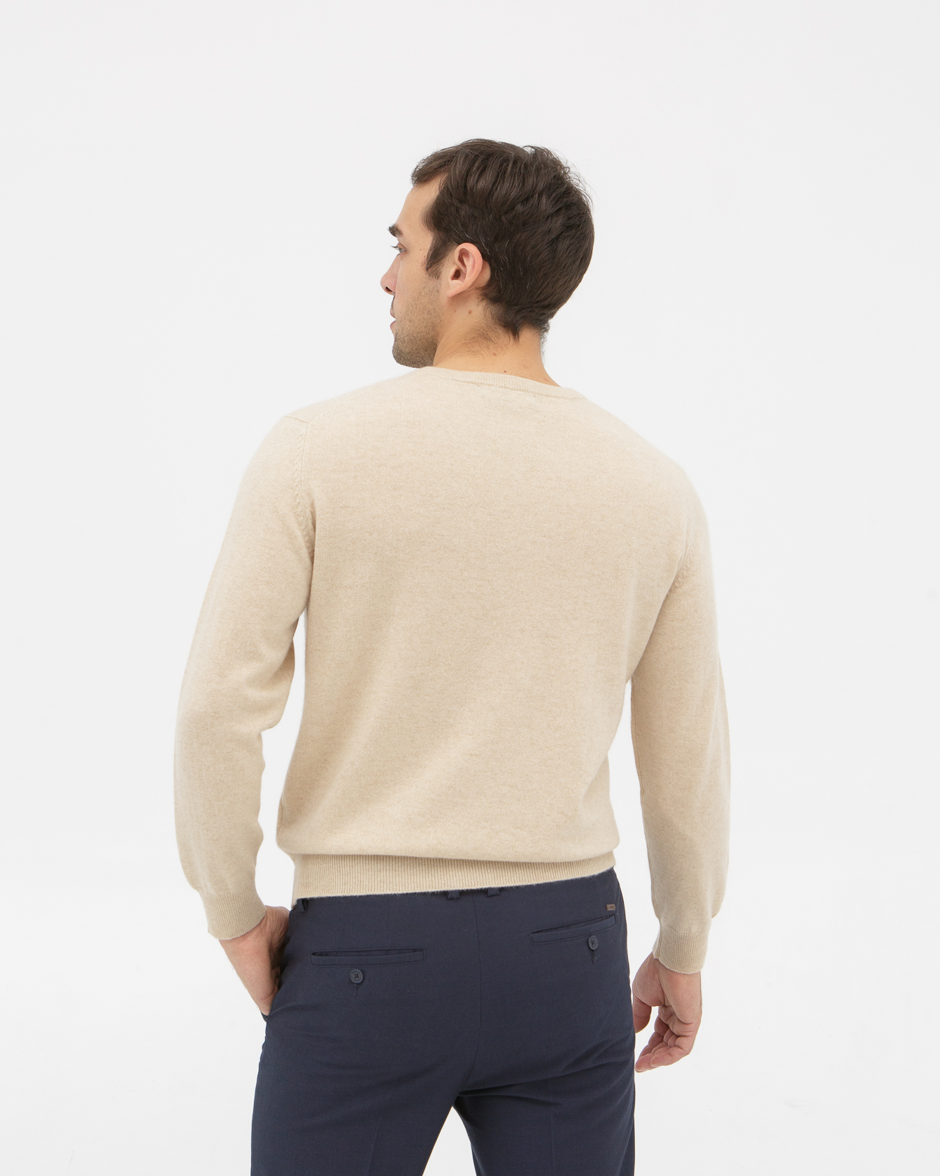 Элегантный мужской джемпер из 100% натурального кашемира в универсальном бежевом цвете – воплощение роскоши и комфорта для повседневной жизни. Премиальное качество материала обеспечивает непревзойденные тактильные ощущения и исключительное тепло.