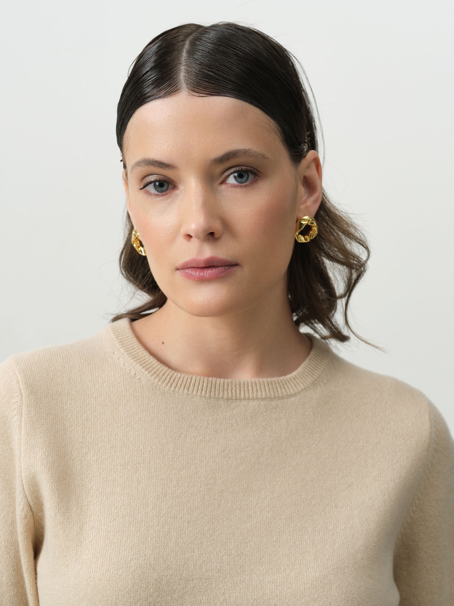 Бежевый оттенок теплого подтона делает этот джемпер универсальным компаньоном для любых сочетаний – от строгих офисных ансамблей с юбками-карандаш до расслабленных weekend-луков с денимом. Классический крой с умеренно свободной посадкой подчеркивает силуэт, сохраняя элегантную непринужденность. Аккуратная горловина и лаконичные линии делают модель особенно практичной для многослойности.