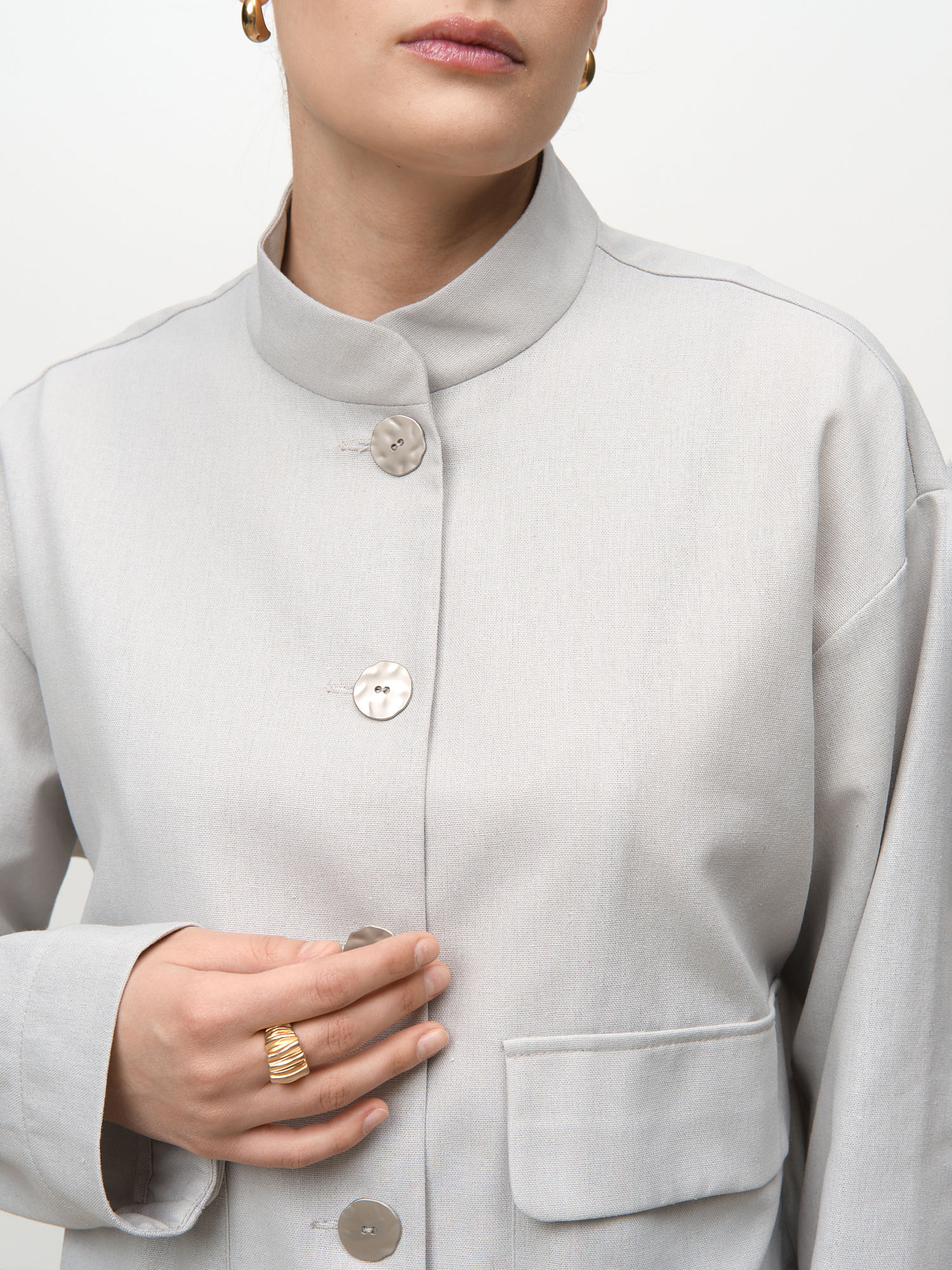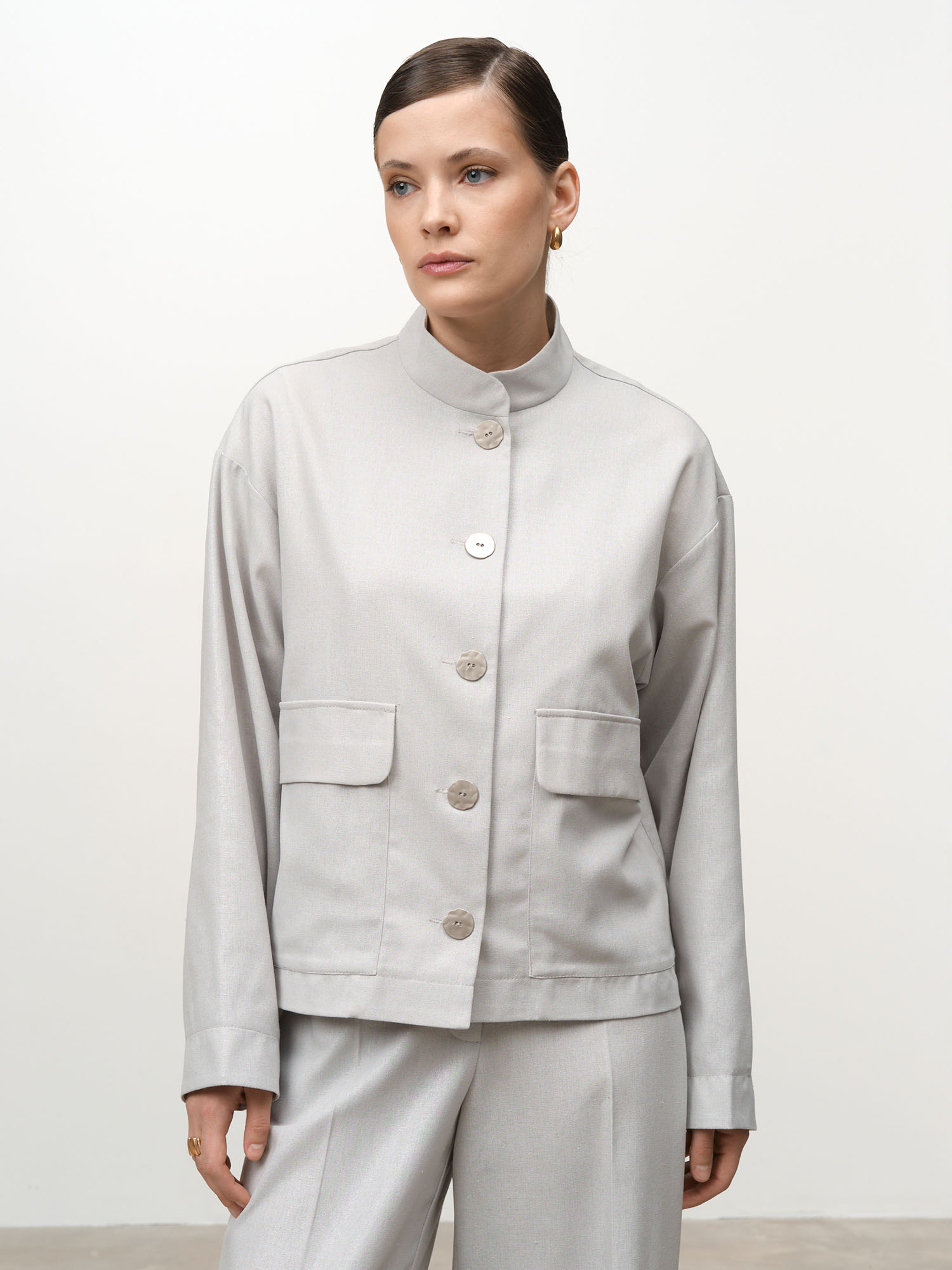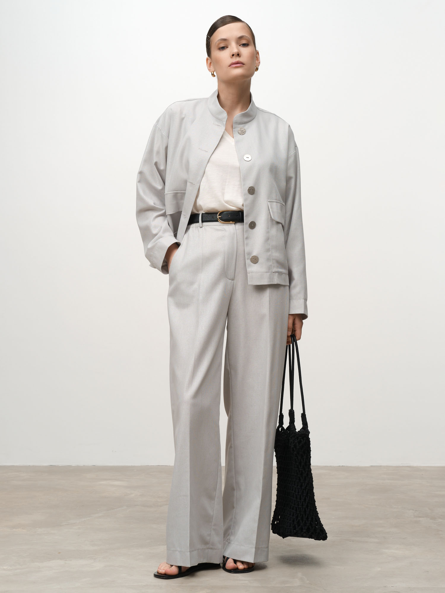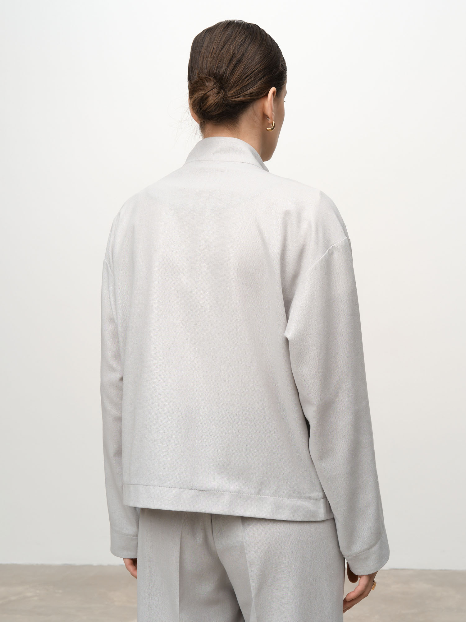 Бомбер в оттенке серебро — это стильная альтернатива классическим базам. Лёгкий, натуральный и небанальный — он станет главным акцентом твоего летнего гардероба.