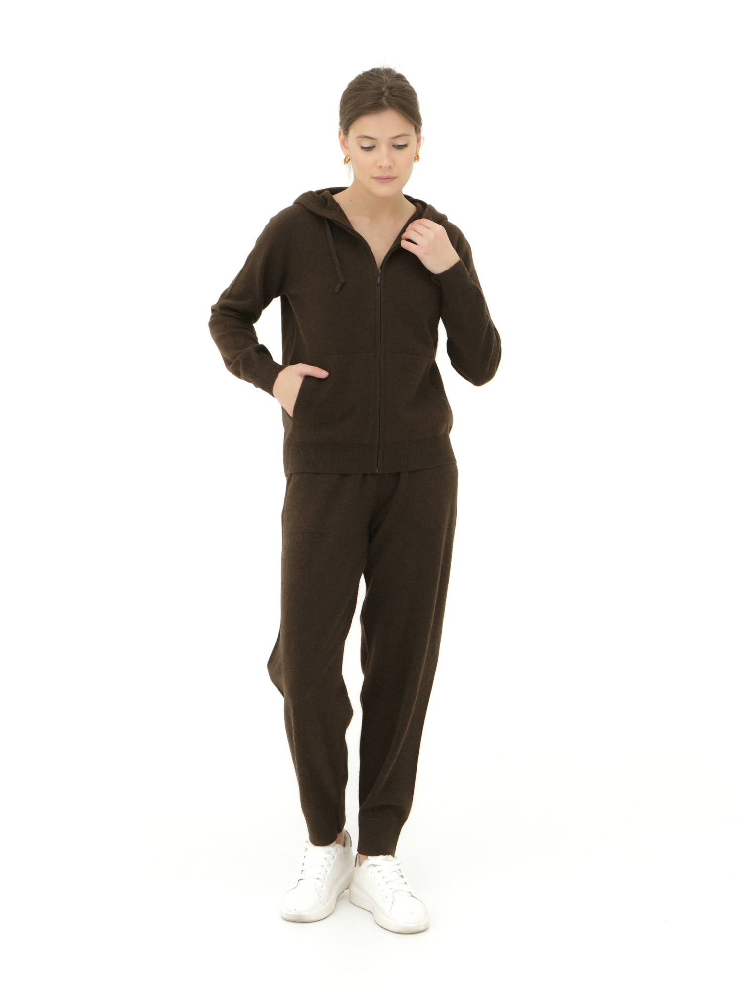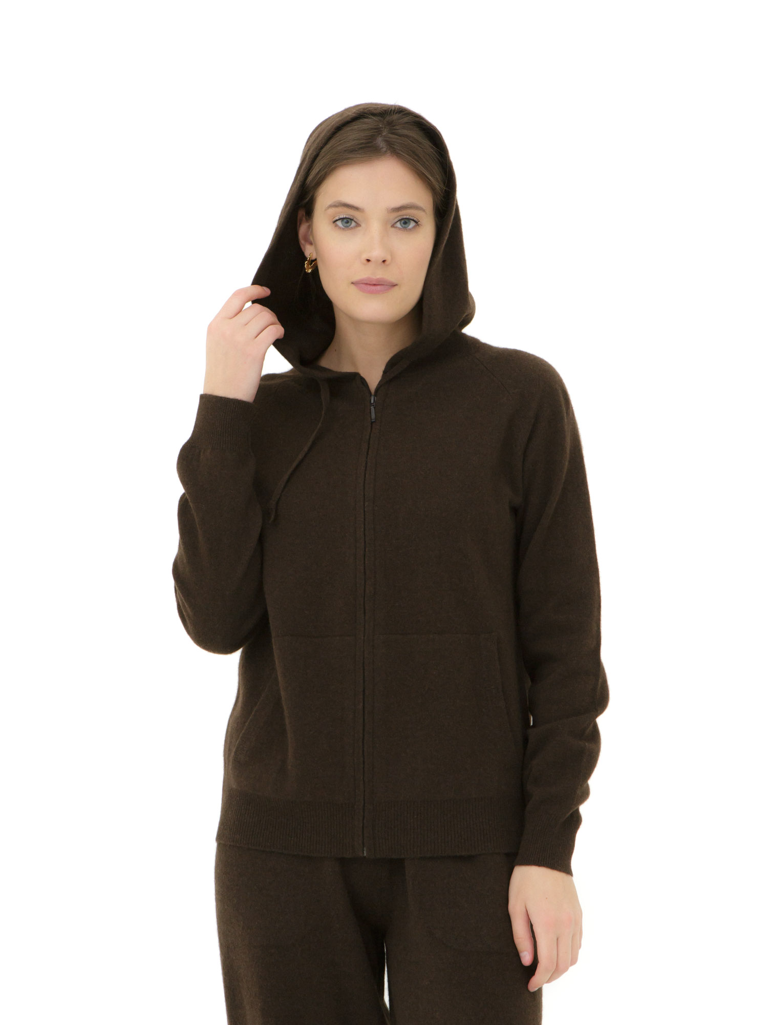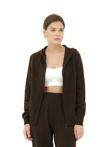 Джемпер из пуха яка с капюшоном 4204 темно-коричневый