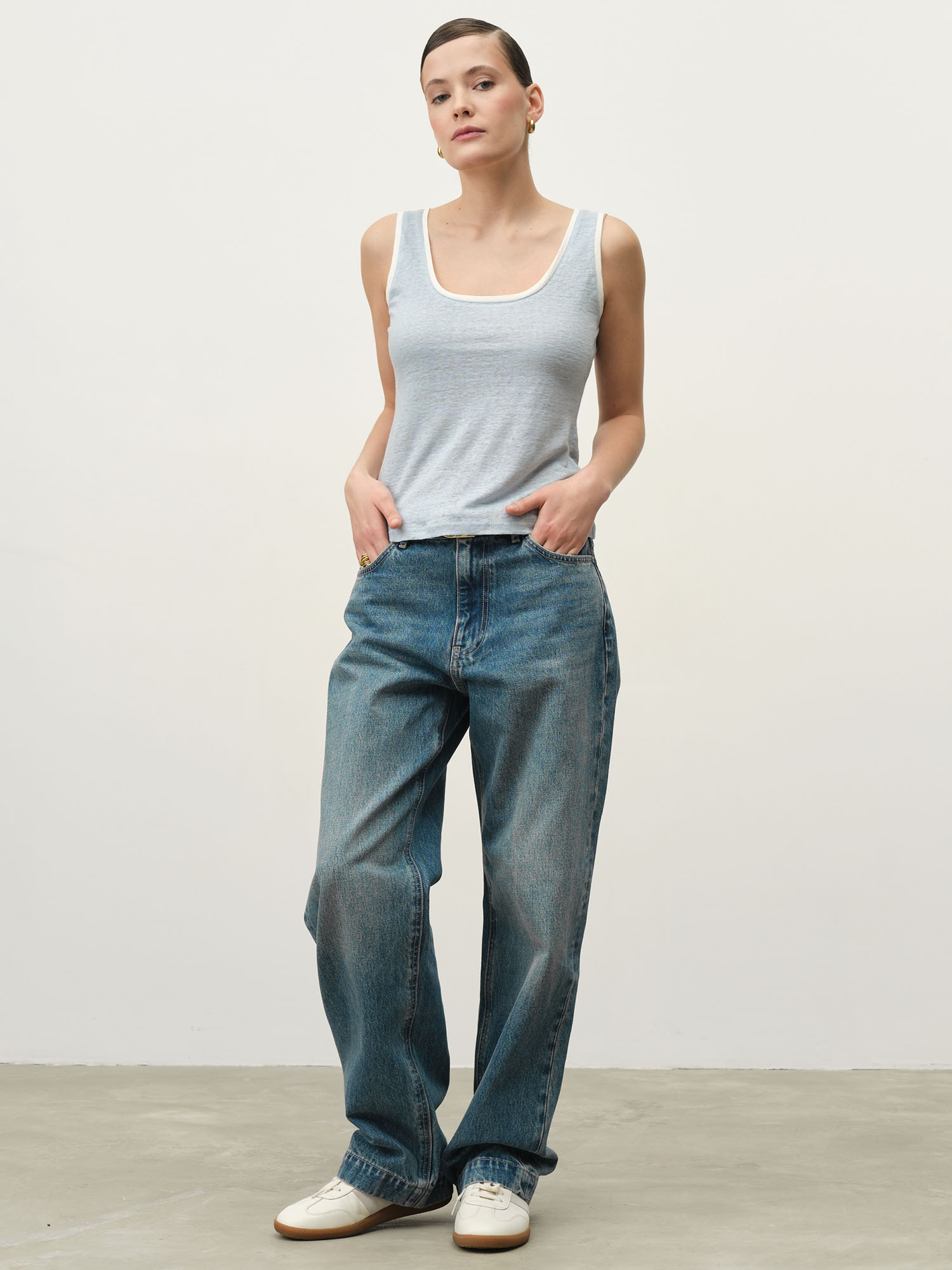 Этот универсальный топ станет отличной базой для летнего гардероба. Носите его с джинсами или льняными брюками для расслабленного образа, или дополняйте жакетом для более строгого, но не перегруженного стиля. Льняная ткань обладает высокой прочностью и долговечностью, что делает этот топ не только стильным, но и практичным выбором.