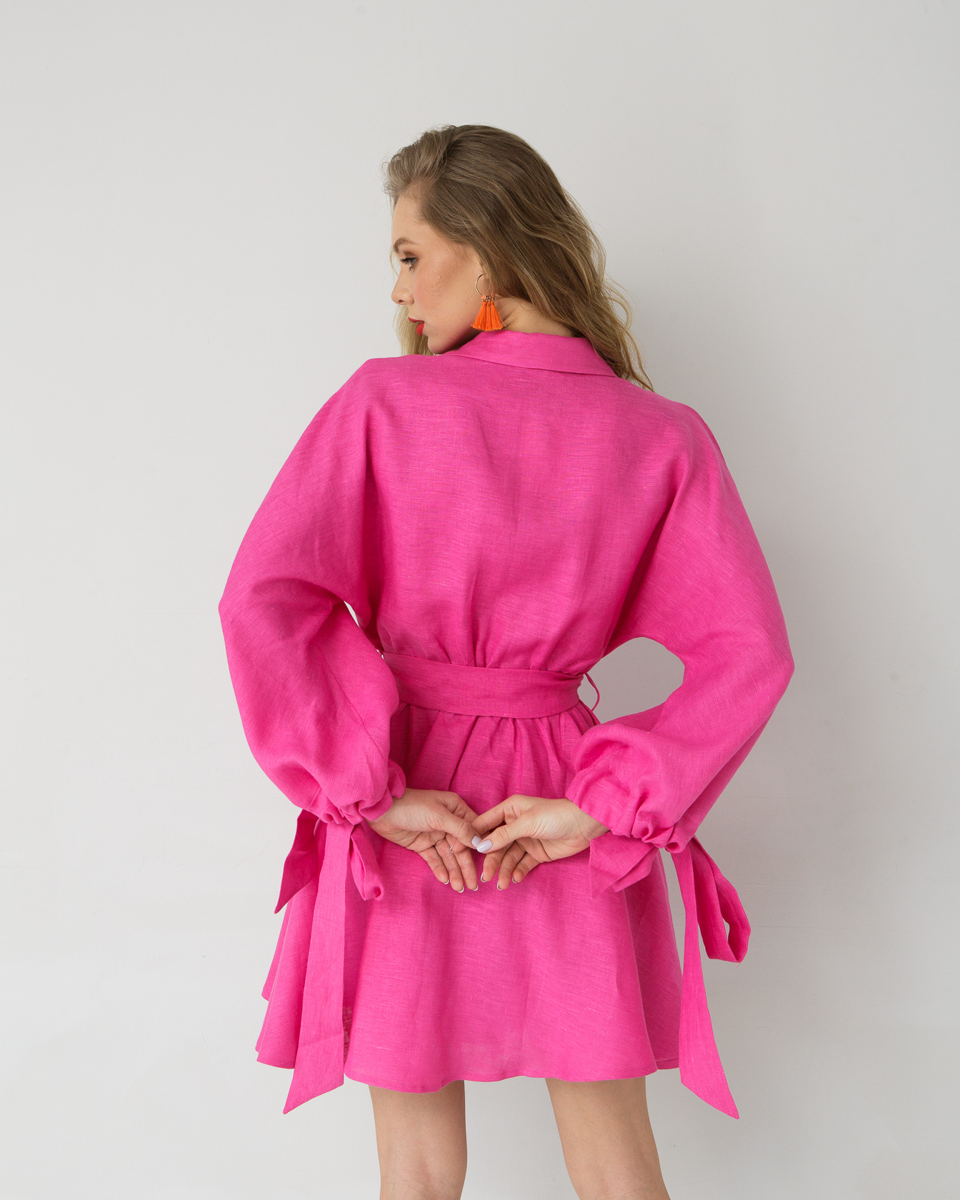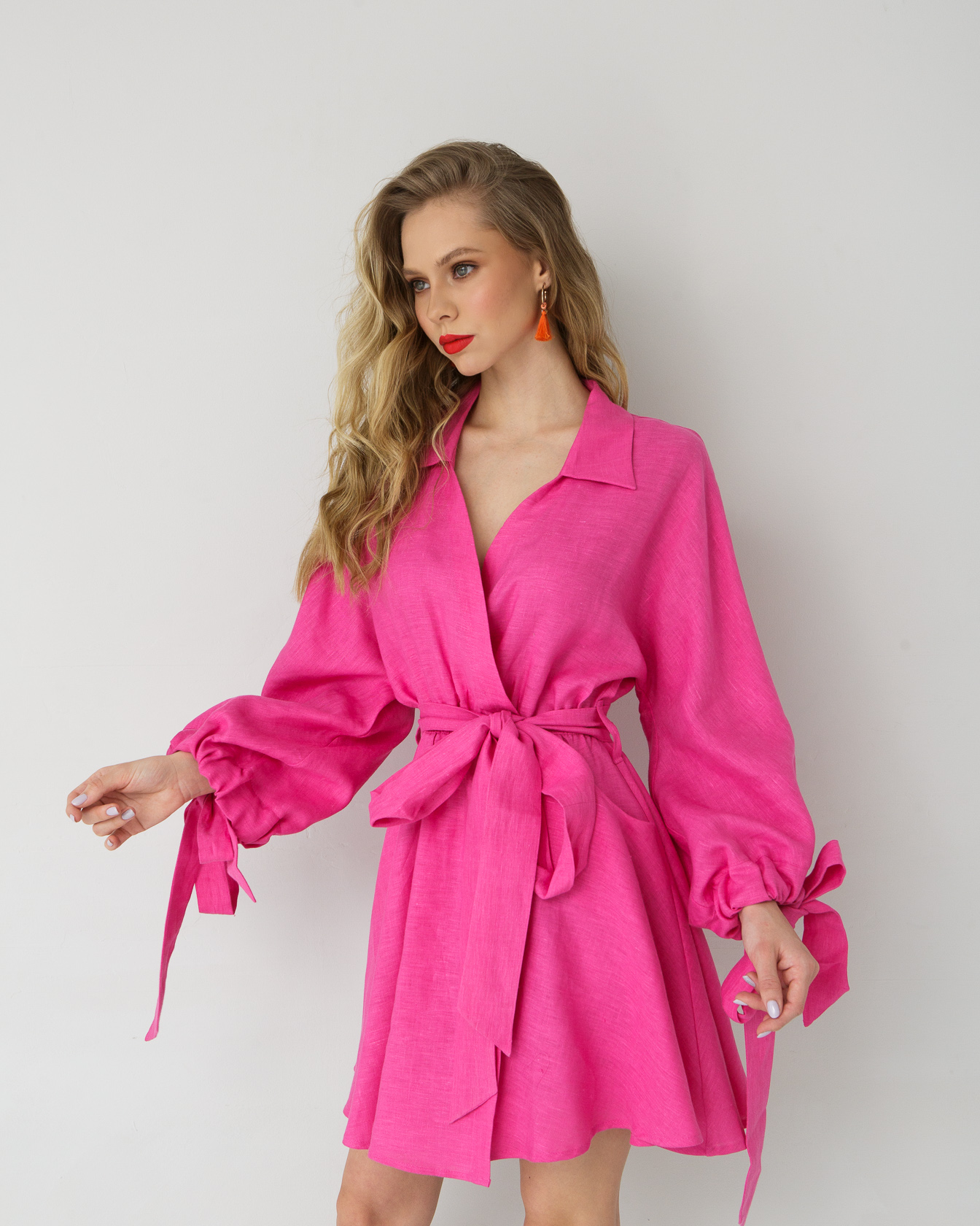 Внесите яркие краски в свой гардероб с этим восхитительным льняным платьем в сочном оттенке фуксии. Изготовленное из 100% натурального льна, оно станет настоящим украшением вашего летнего гардероба, привнося в каждый образ энергию и жизнерадостность.