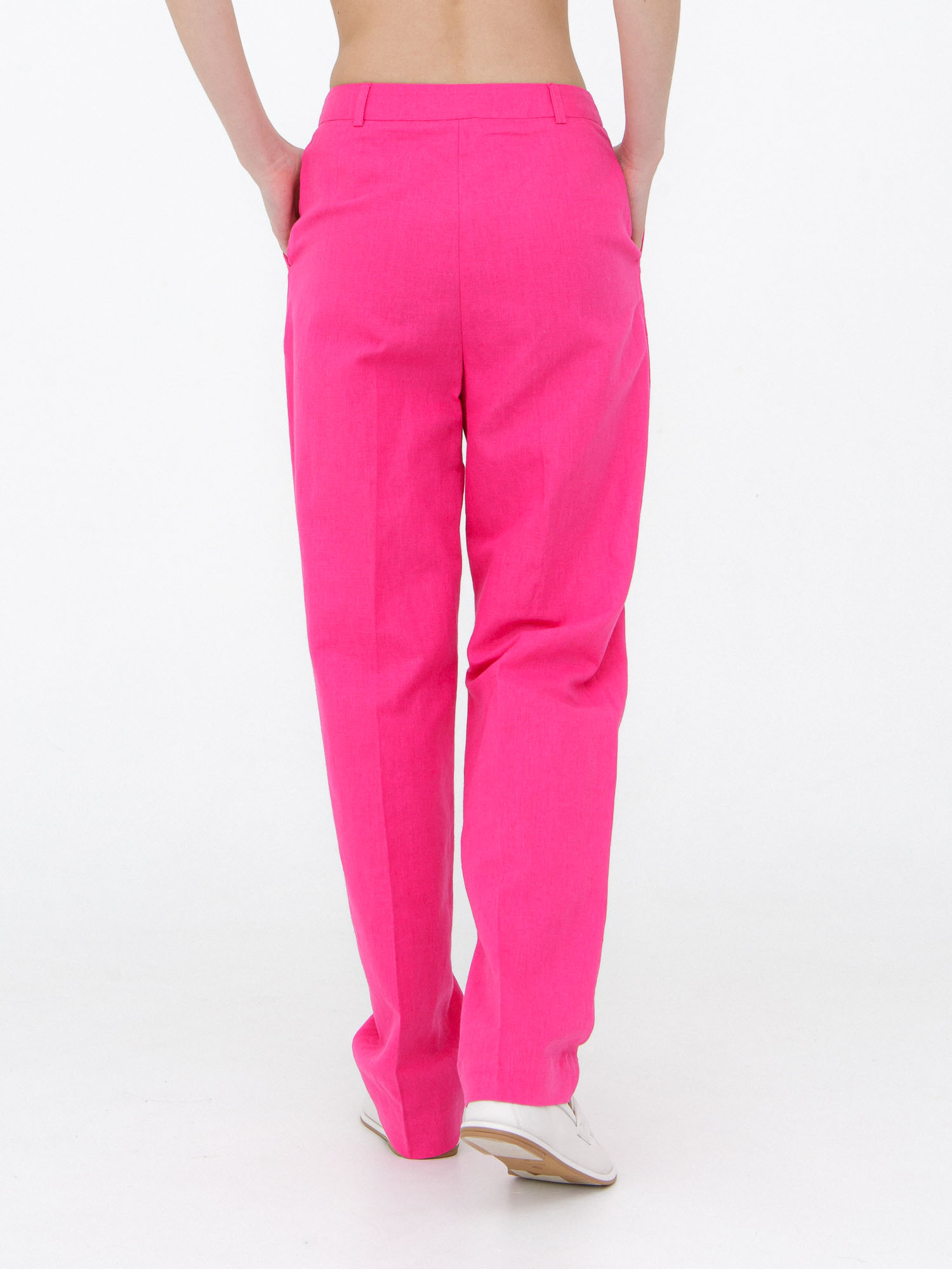 Яркий цвет фуксии добавляет вашему образу энергичности и выразительности, делая эти брюки ключевым элементом летнего гардероба. Они безупречно сочетаются со светлыми блузами и топами для создания контрастного образа или с однотонными вещами нейтральных оттенков для более сдержанного ансамбля.