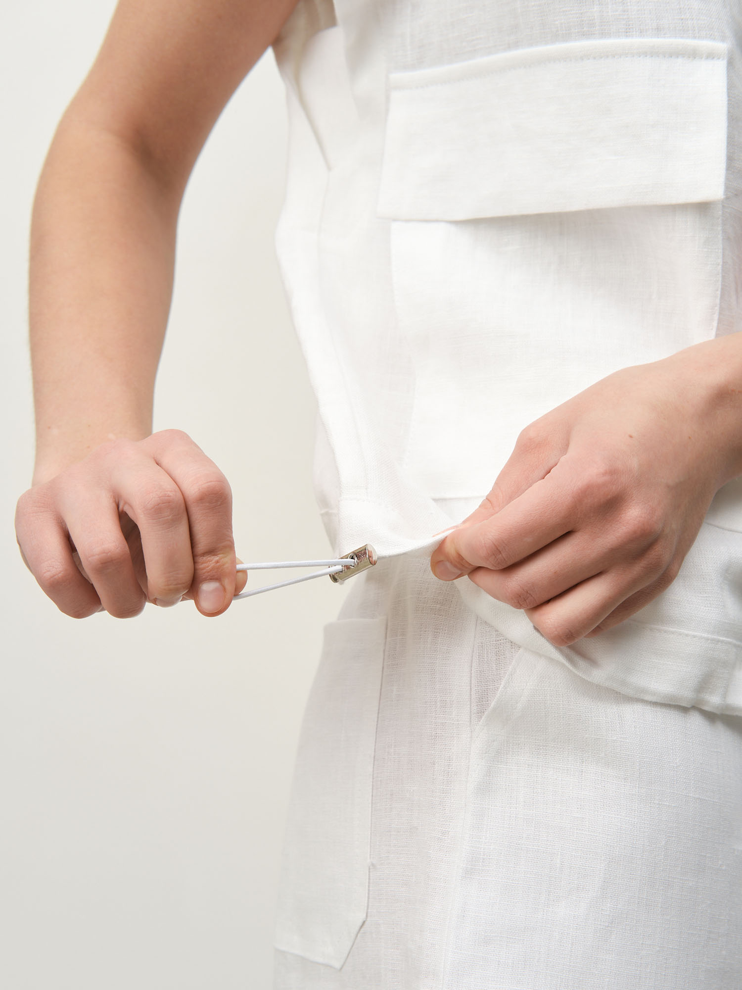 Натуральная ткань для жаркой погоды с характерной льняной фактурой приятна к телу и обеспечивает оптимальный микроклимат. Блузка прекрасно впитывает влагу и быстро сохнет, сохраняя ощущение свежести на протяжении всего дня.