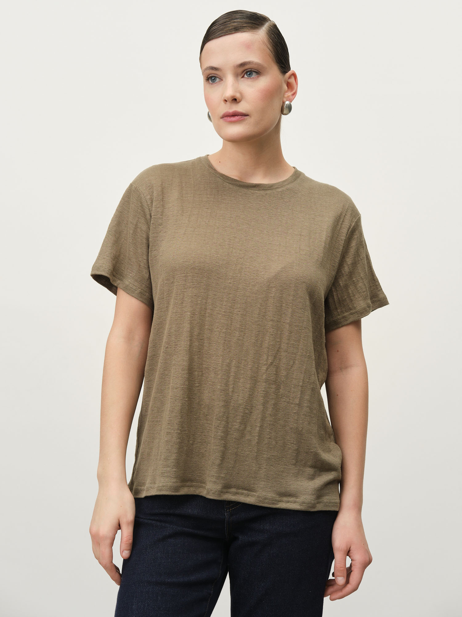 Цвет хаки — это универсальный и стильный оттенок, который никогда не выходит из моды. Он отлично сочетается с другими нейтральными оттенками и яркими акцентами, что делает футболку идеальной для создания различных образов.