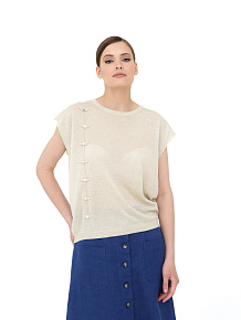 Изысканная простота и природная мягкость – женский топ молочного цвета из премиальной смеси льна, хлопка и вискозы (40%/35%/25%) станет вашим любимым базовым элементом для создания разнообразных образов. Это воплощение комфорта и элегантности в натуральном исполнении.