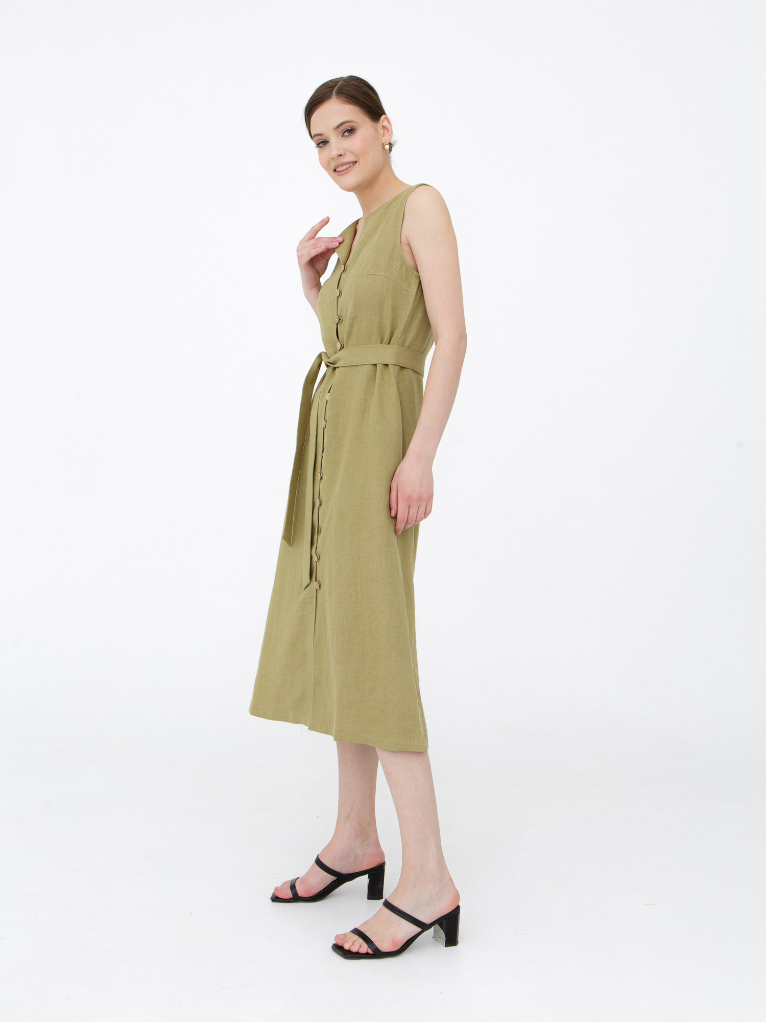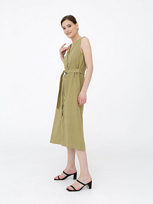 Платье из льна КЛ-7415-ИЛ23 светлый хаки