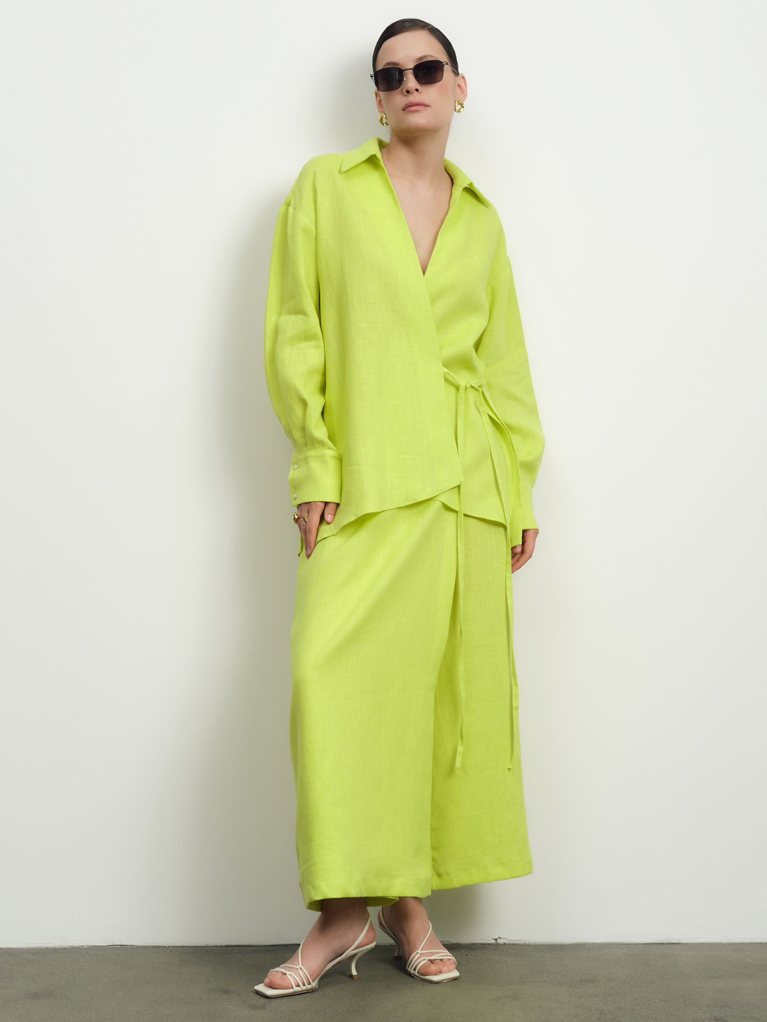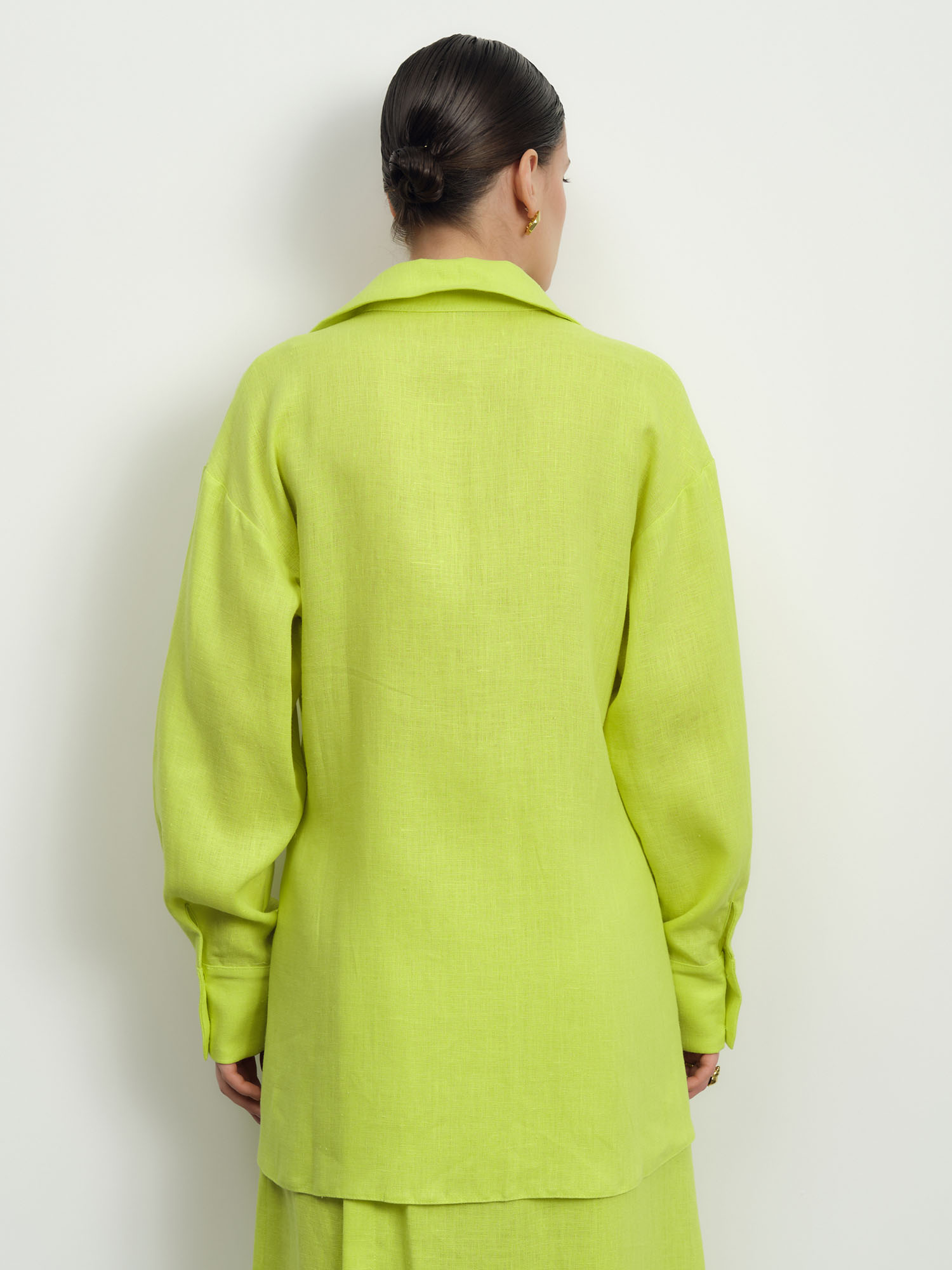 Льняная рубашка насыщенного лаймового оттенка – идеальный выбор для жарких дней. Свободный крой и натуральный материал обеспечивают комфорт, а сочный цвет добавляет образу энергии и стиля.