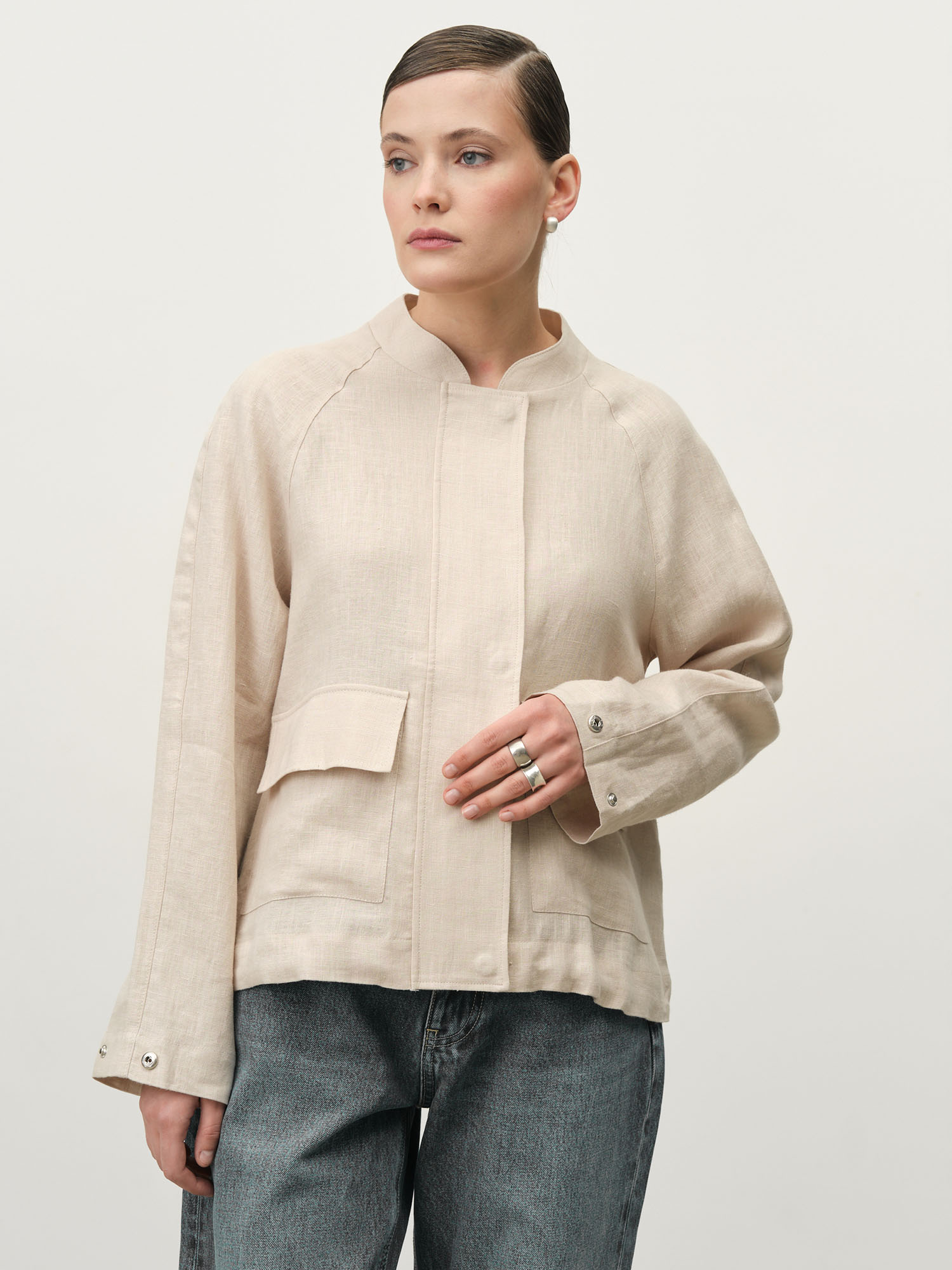 Этот жакет легко впишется в повседневные и деловые образы. Он прекрасно сочетается с брюками, джинсами или юбками, создавая стильные и гармоничные комплекты. Идеальный вариант для прохладных летних вечеров и межсезонья.