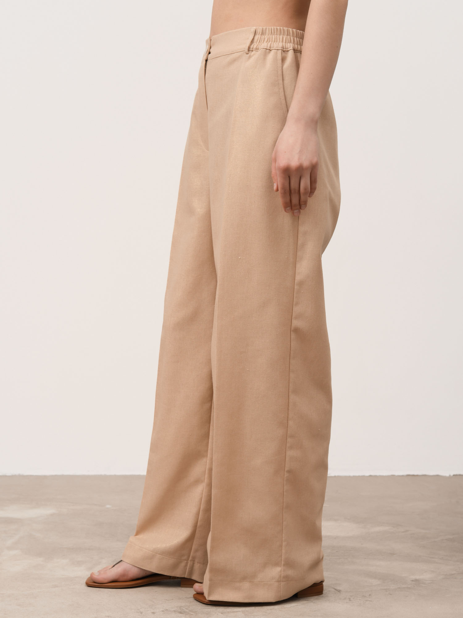 Шикарный золотистый оттенок! Брюки из натурального льна, очень легкие и комфортные. Ткань приятная на ощупь, не раздражает кожу. |