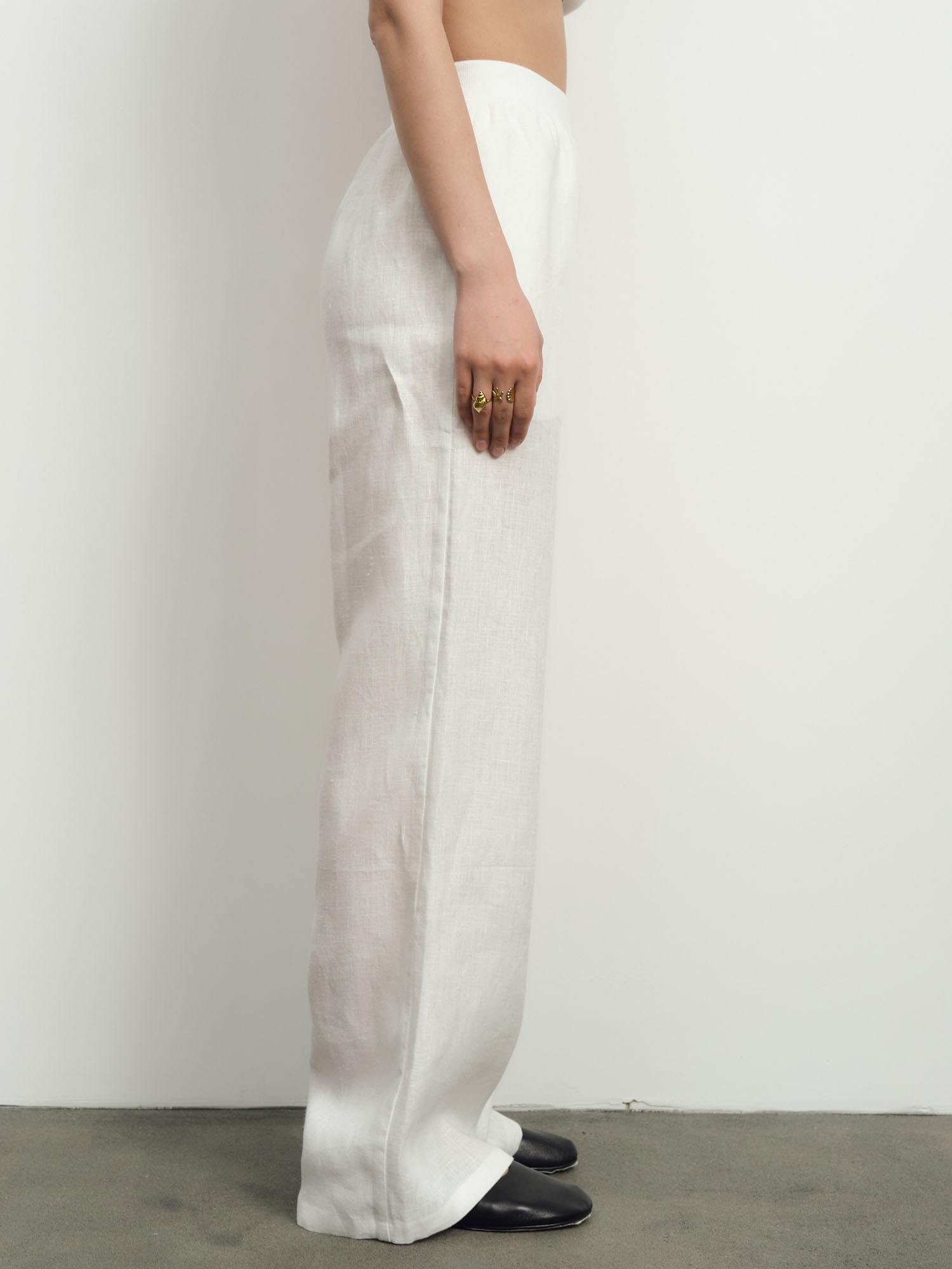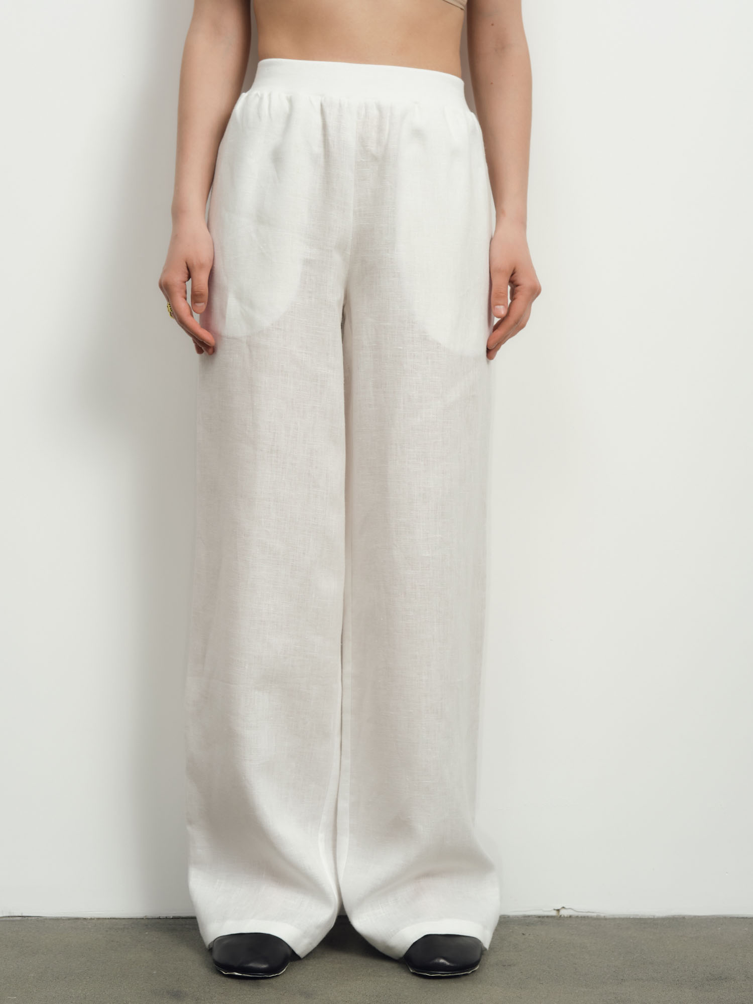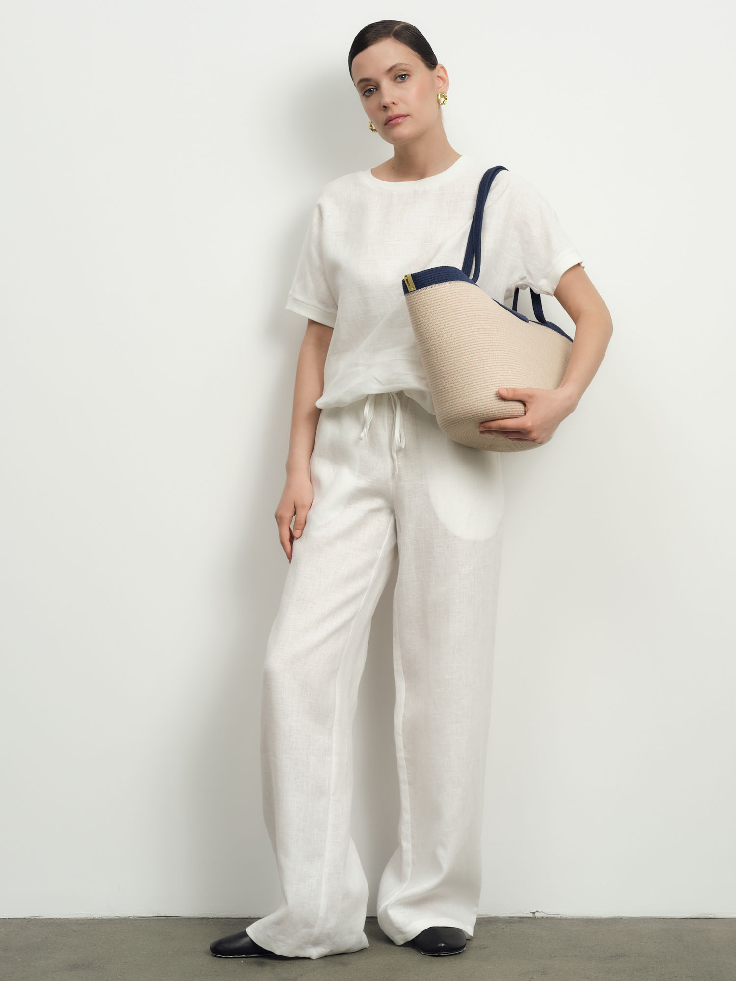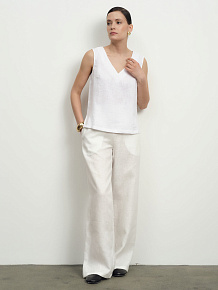 В паре с блузкой из того же материала — можно собрать модный льняной костюм