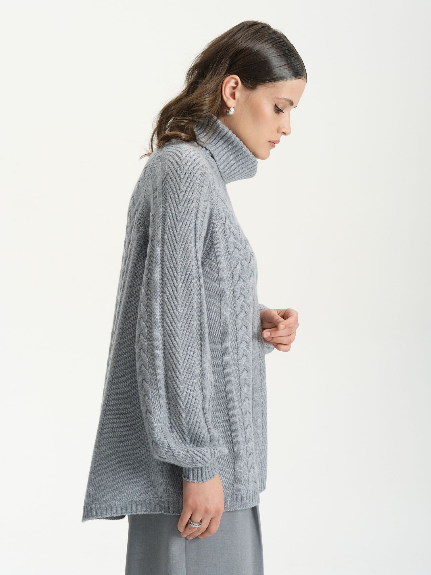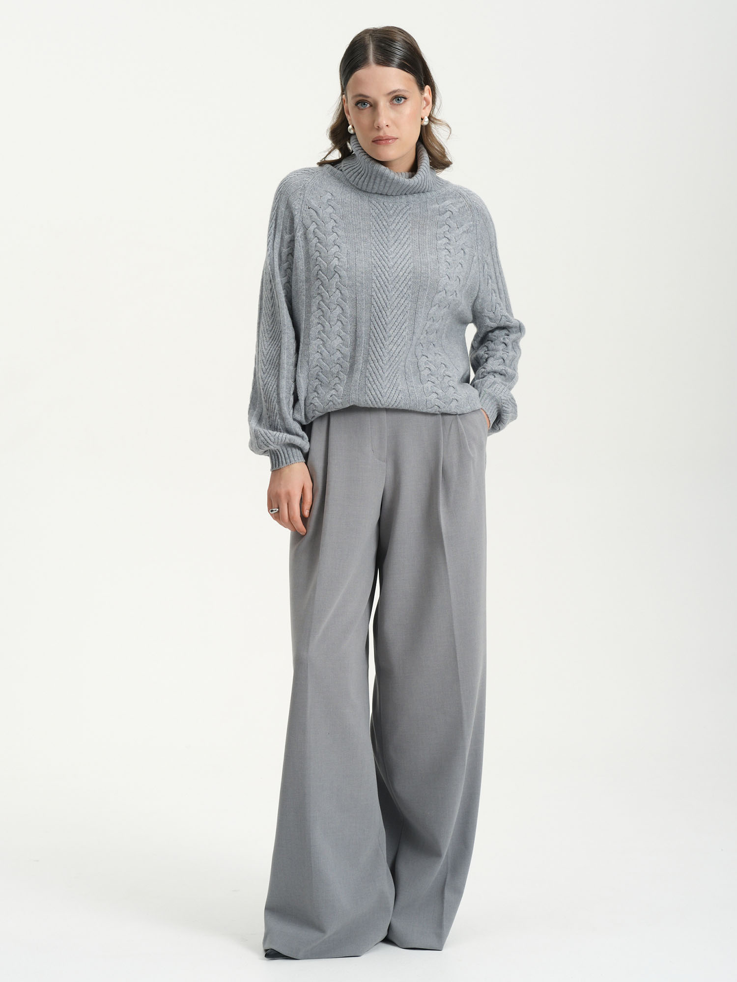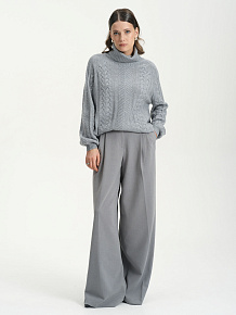 Серо-голубой оттенок, напоминающий морскую гладь на рассвете, придает свитеру универсальность и благородство. Классический свободный крой с аккуратными линиями подчеркивает женственность силуэта, не сковывая движений. Эта модель станет идеальной основой для создания разнообразных образов – от строгого офисного с брюками-кюлотами до романтичного с юбкой миди или повседневного с джинсами-скинни.