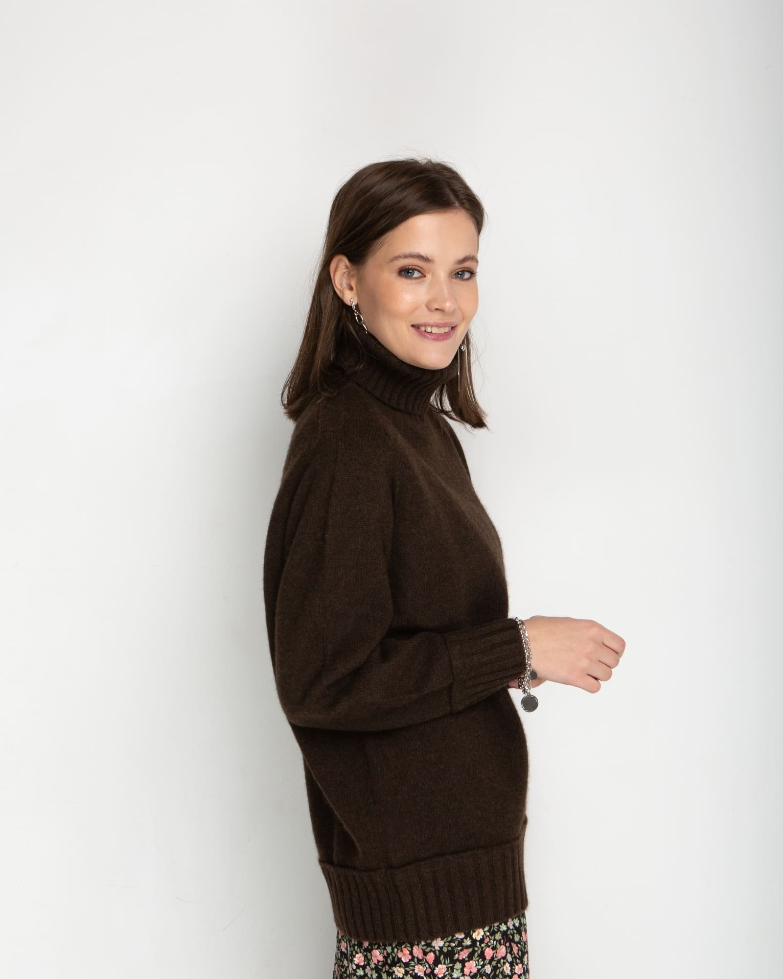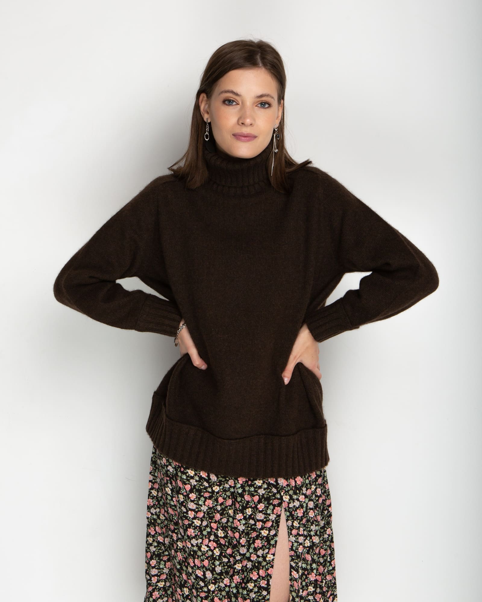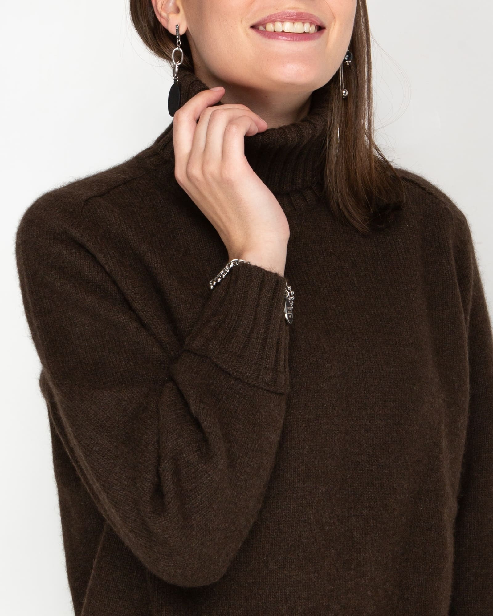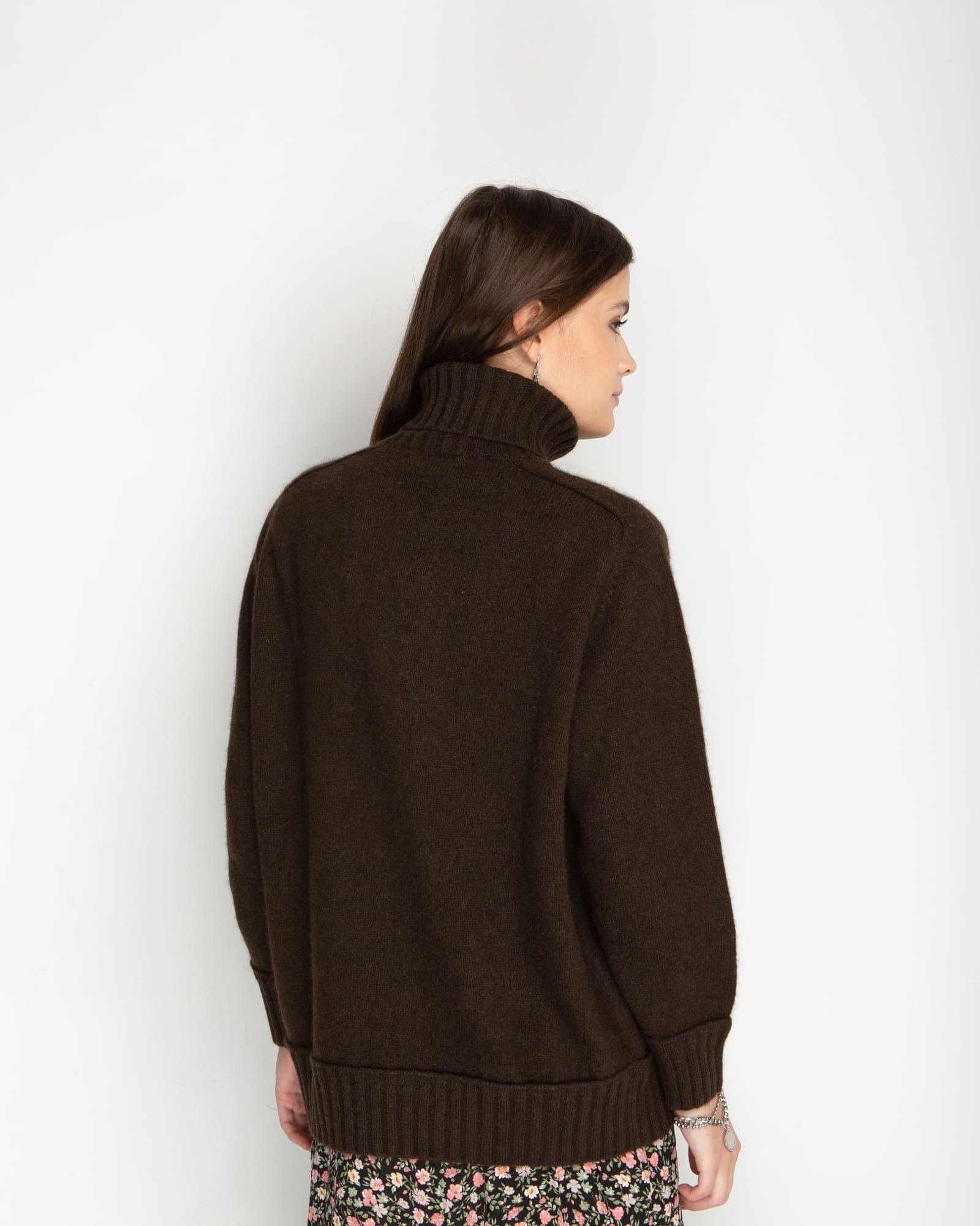 Глубокий коричневый оттенок свитера подчеркивает природное происхождение материала и придает изделию благородный вид. Этот универсальный цвет легко интегрируется в любой гардероб и сочетается с одеждой различных стилей — от классического до casual. Натуральный оттенок пуха яка никогда не выходит из моды и всегда выглядит уместно.