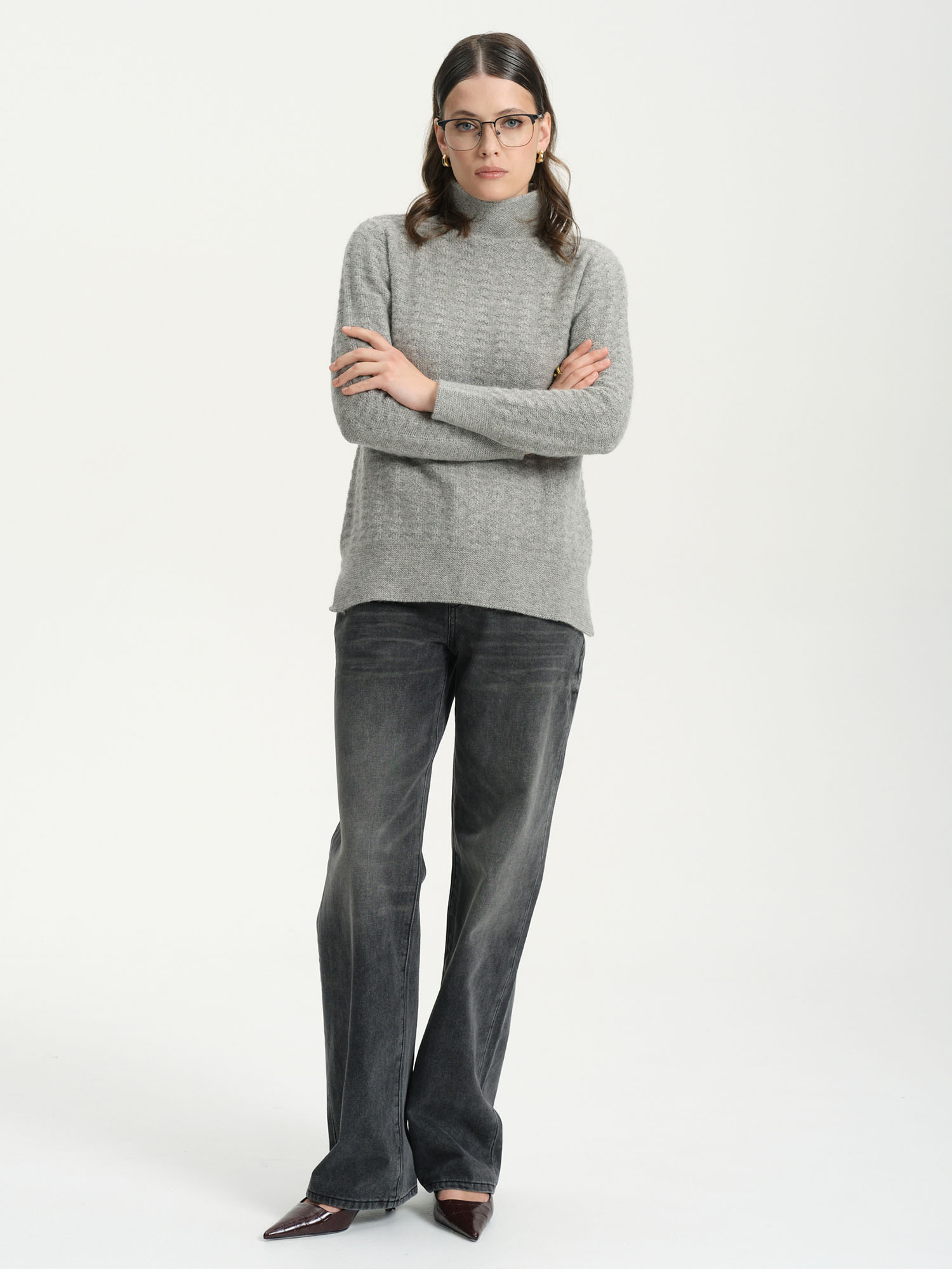 Модель выполнена в классическом дизайне с круглым вырезом и прямым силуэтом, что делает её универсальной и подходящей для любого типа фигуры. Тщательно проработанная вязка с традиционным узором обеспечивает оптимальную плотность и износостойкость изделия. Серый цвет придает джемперу практичность и стилистическую гибкость, легко интегрируясь в различные образы.