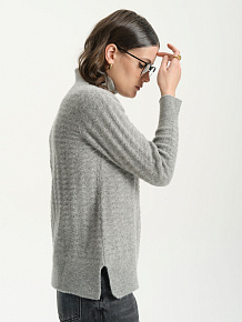 Свитер относительно тонкий, "дышащий" и очень теплый. Цвет светло-серый. Рекомендую! |