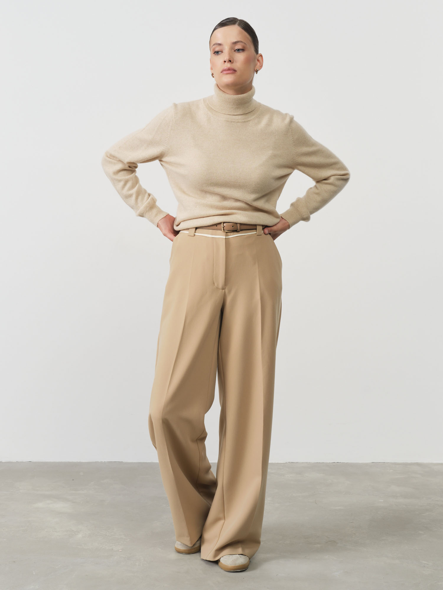 Универсальный бежевый оттенок — это идеальное решение для базового гардероба. Нейтральный цвет легко комбинируется с одеждой любых цветов и стилей, от классических деловых ансамблей до повседневных образов. Бежевый кашемир особенно выигрышно подчеркивает благородство и высокое качество материала.