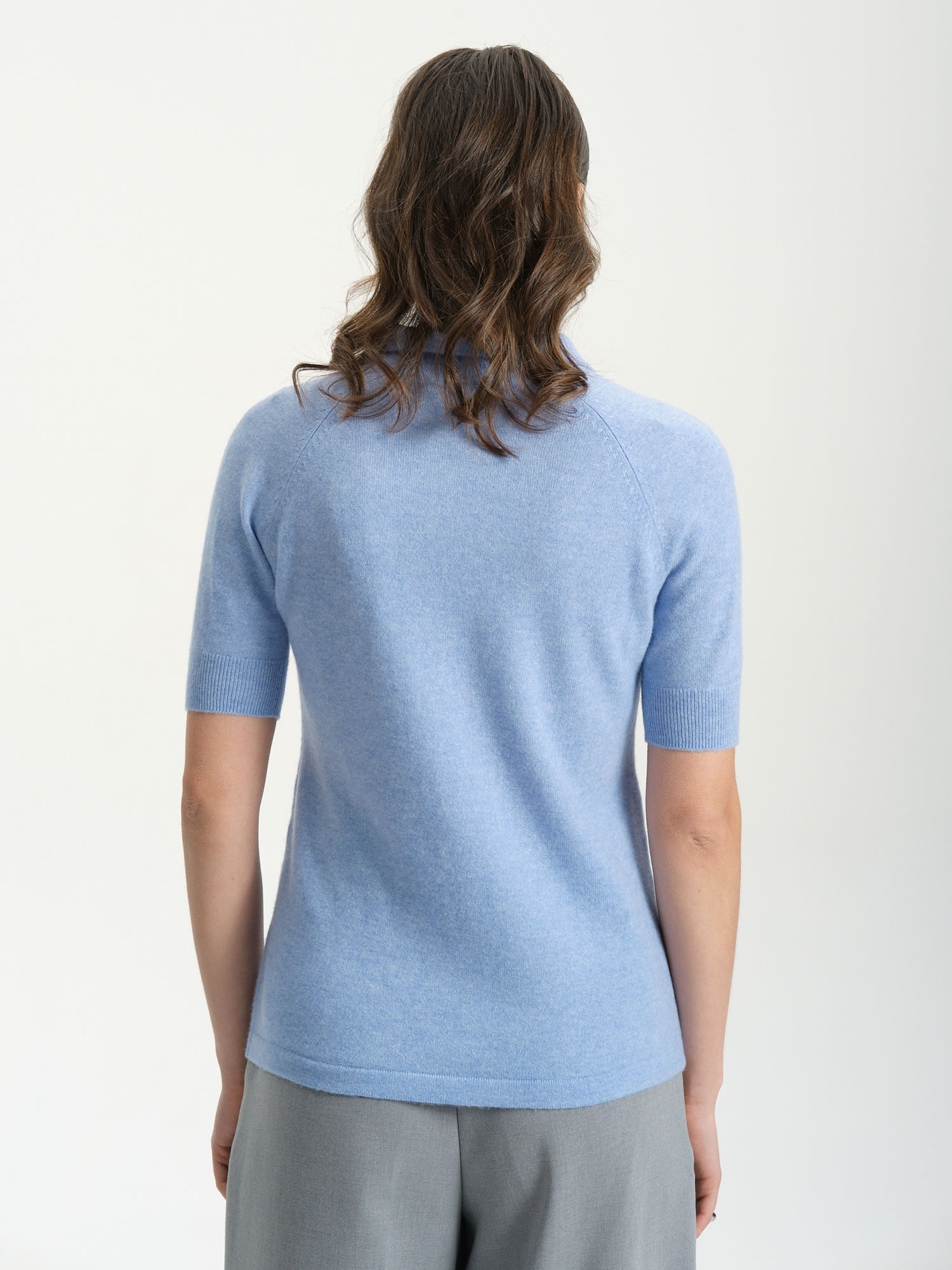 Классический джемпер-поло с коротким рукавом, аккуратным воротником и застёжкой на пуговицы. Прямой силуэт обеспечивает комфортную посадку и универсальность.