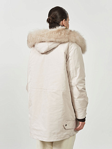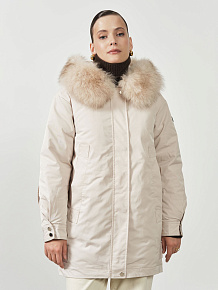 Объёмный меховой воротник, мягкий и тёплый, визуально подчёркивает зону плеч и шеи.