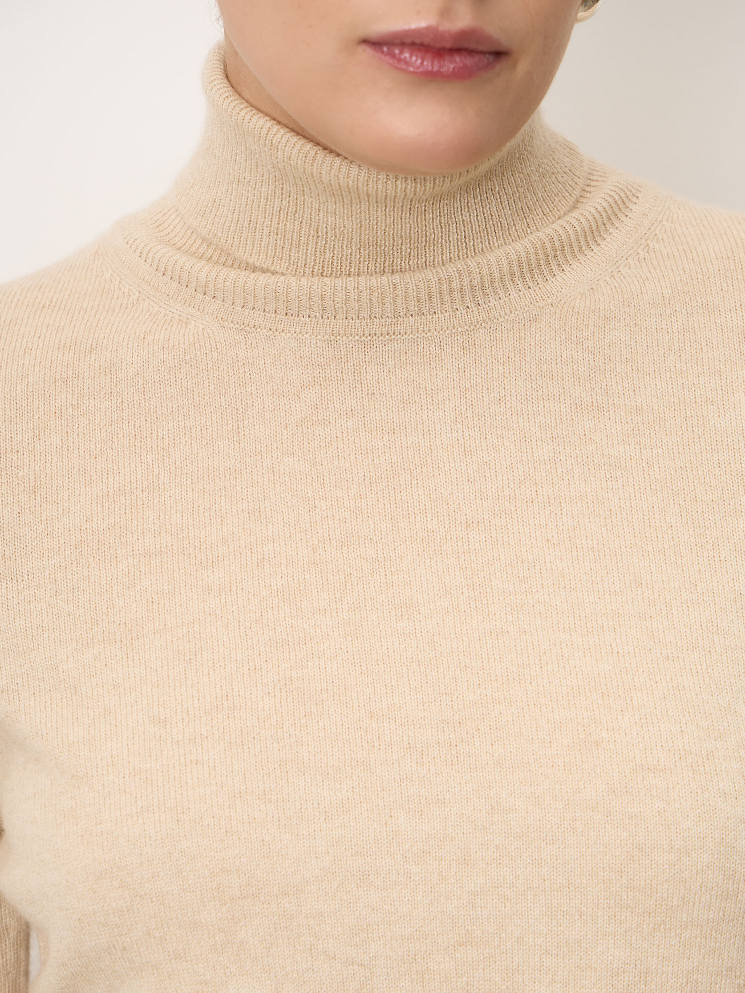 Бежевая водолазка из чистого кашемира — это базовая вещь класса люкс. Она долговечна, универсальна и легко вписывается в любой капсульный гардероб, подчёркивая вкус и статус своей обладательницы.