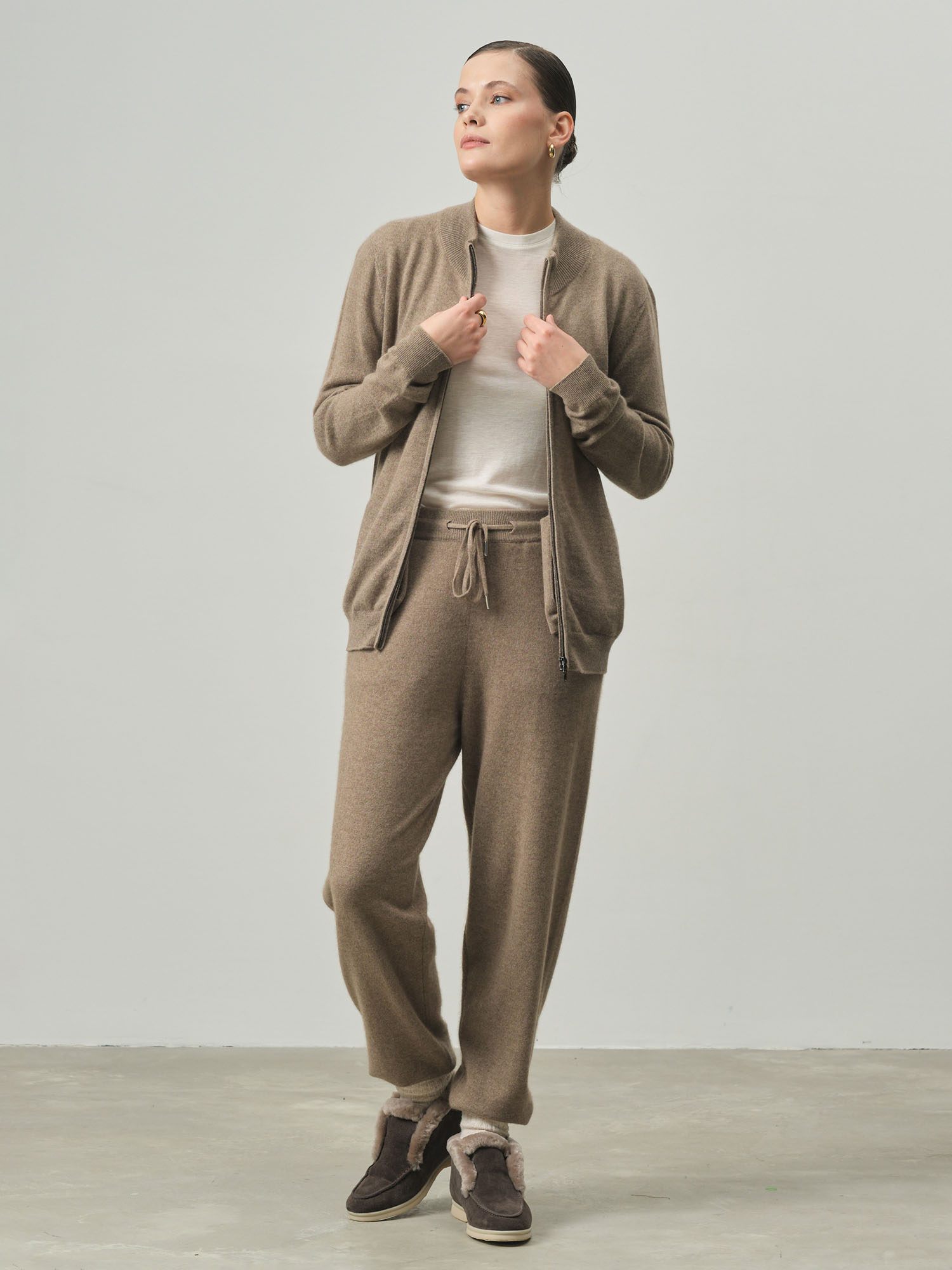 Брюки женские из кашемира KW150839-E капучино