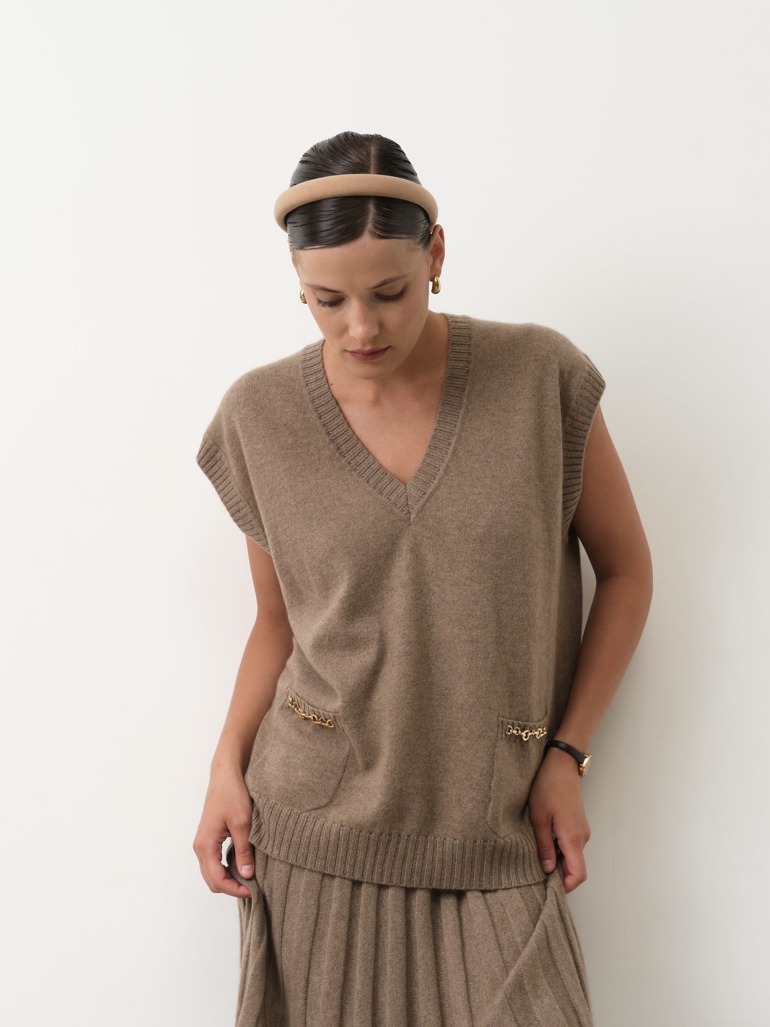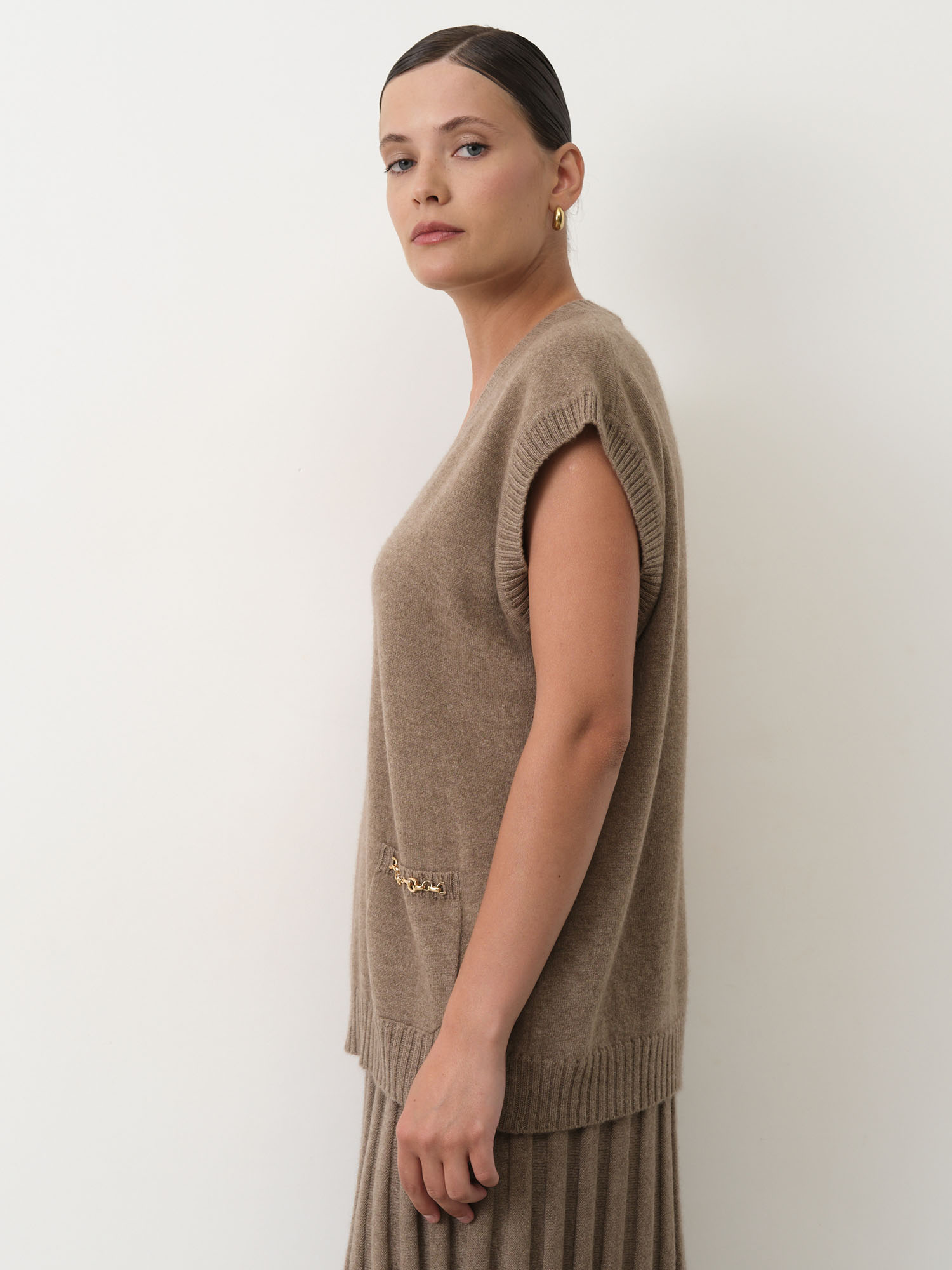свободный джемпер без рукавов с V-образным вырезом