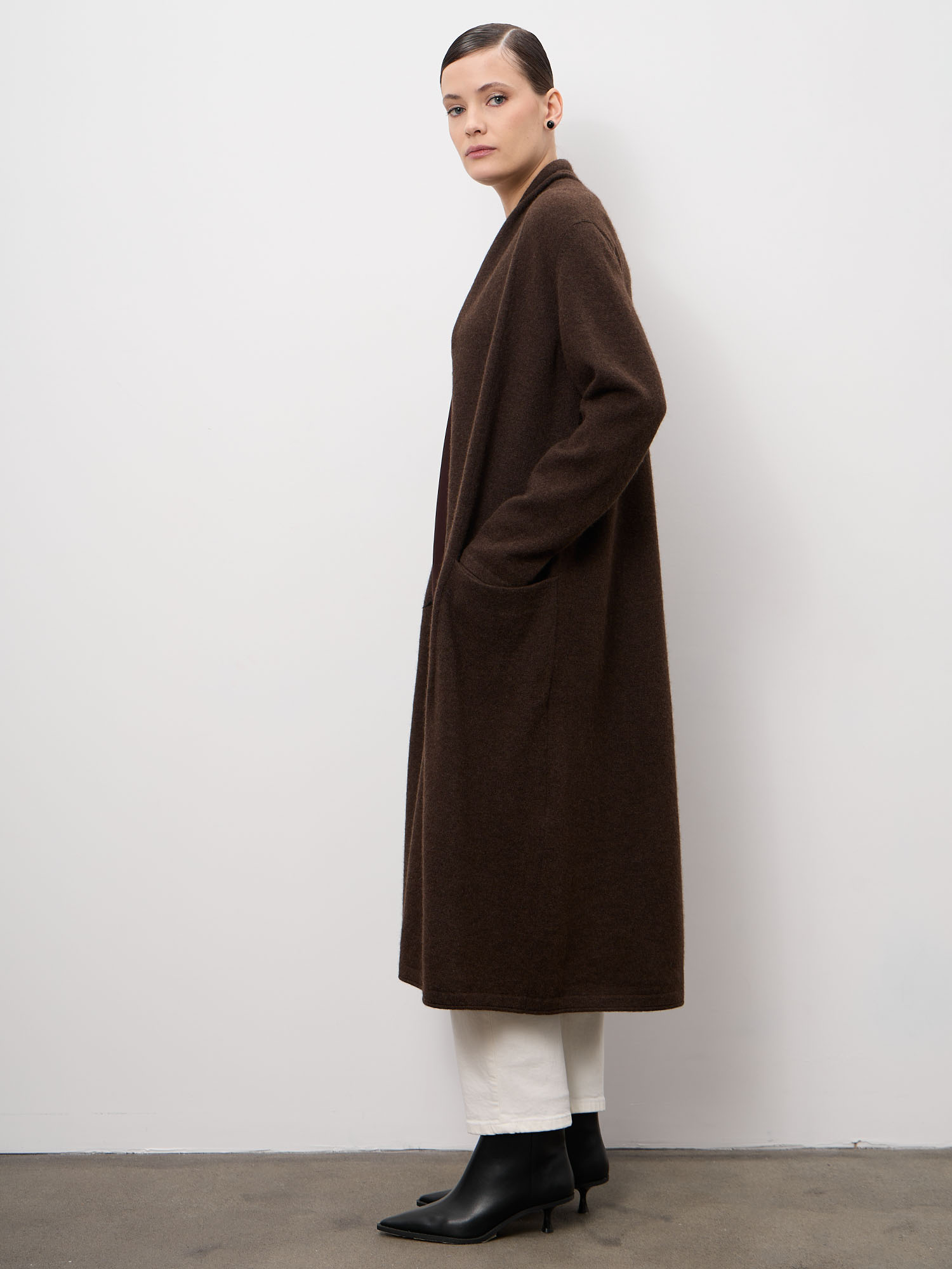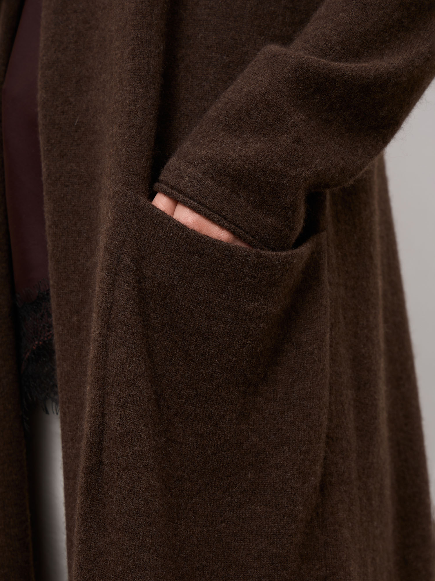 Элегантный удлинённый кардиган из пуха яка — универсальная модель для холодного сезона. Благородная фактура и мягкий силуэт подчёркивают утончённый стиль и создают ощущение уюта и комфорта в повседневных и многослойных образах.